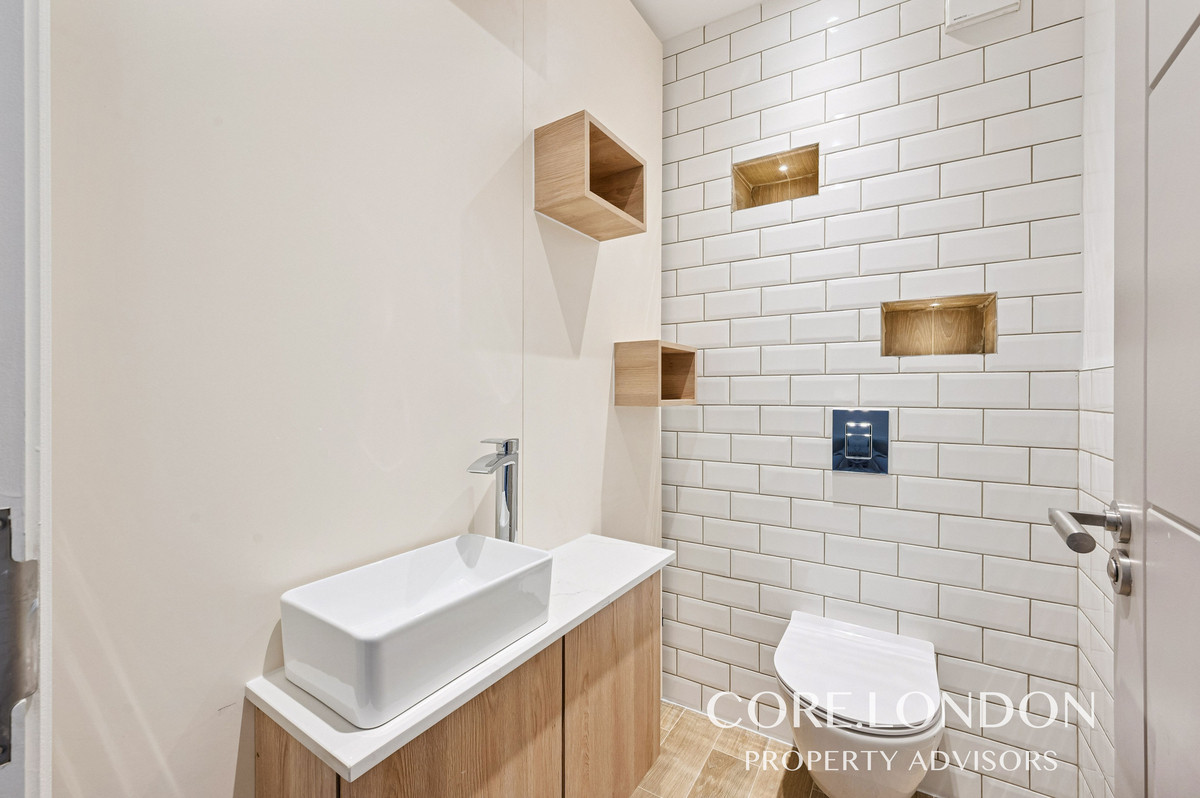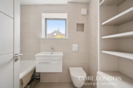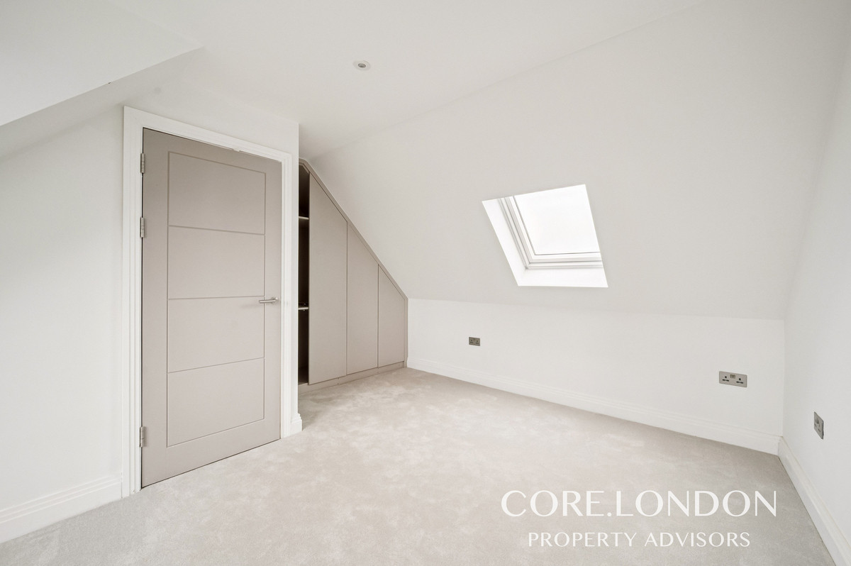 The upper floors provide three generous double bedrooms, including a top-floor principal bedroom with excellent proportions and built-in storage. Bathrooms are finished to a contemporary standard with quality fittings, clean tiling and a calm, neutral palette. Storage has been carefully considered throughout, ensuring the layout works comfortably for long-term family living..