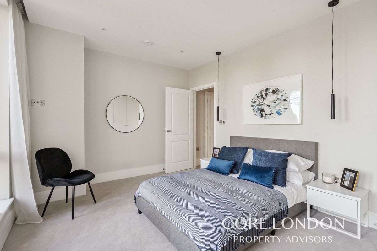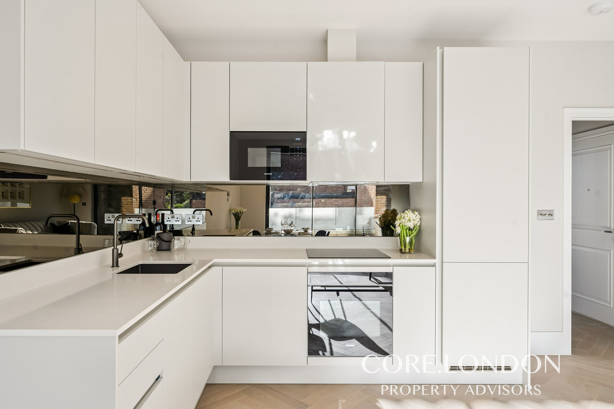 This apartment has been thoughtfully designed with a focus on quality, comfort and natural light. Interiors feature premium Leicht kitchens with Caesarstone worktops, fully integrated Siemens appliances, elegant herringbone flooring and high-quality Grohe/Duravit bathrooms.