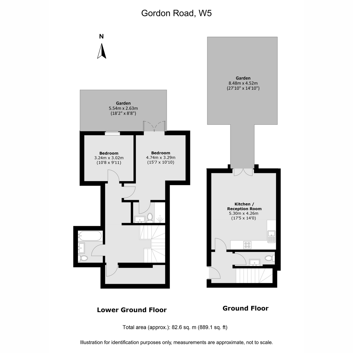 The lower ground floor provides two well-proportioned bedrooms. The principal bedroom offers excellent floor space and benefits from direct access to the garden terrace, allowing natural light to flow into the room while creating a calm and private setting. The second bedroom is also generously sized and would work equally well as a guest room, home office or additional bedroom.