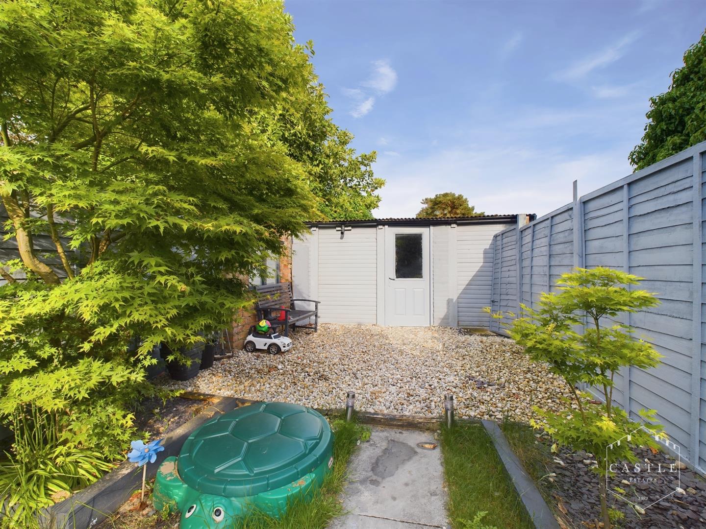 Outside - The property is set back from the road. Shared pedestrian access to the rear of the property where there is a long, fully fenced and enclosed rear garden with deep full width patio adjacent to the rear of the property. Garden is principally laid to lawn with surrounding raised slate boarders with railway sleepers. To the top of the garden there is a further seating area. There is an outside tap. To the top of the garden double timber gates offer access to a driveway giving OFF ROAD PARKING leading to a detached sectional concrete garage 2.72 x 5.52 with up and over door to front with power and light.