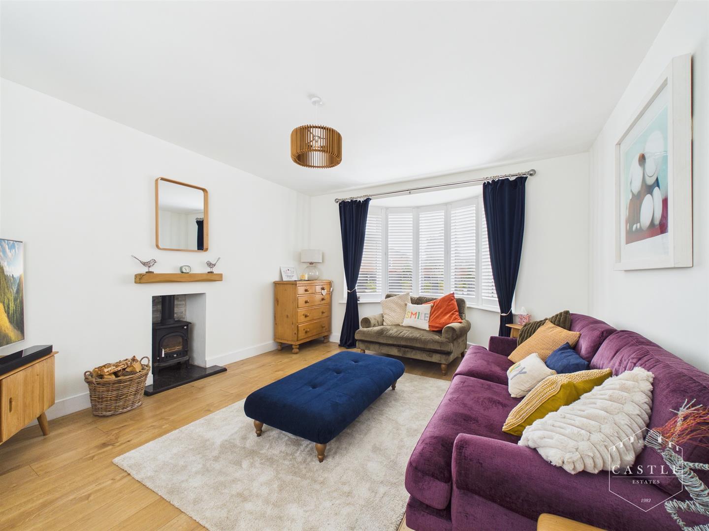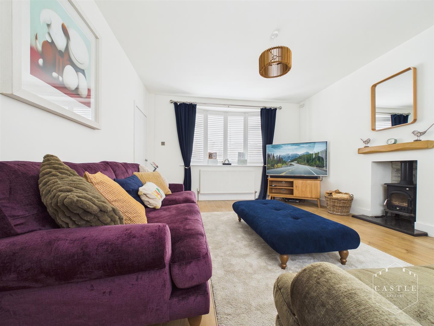 Lounge - 4.52m x 3.96m (14'10 x 13) - having feature log burning stove with beam over and marble hearth, wood effect flooring, tv aerial point, central heating radiator, two upvc double glazed windows front and rear.