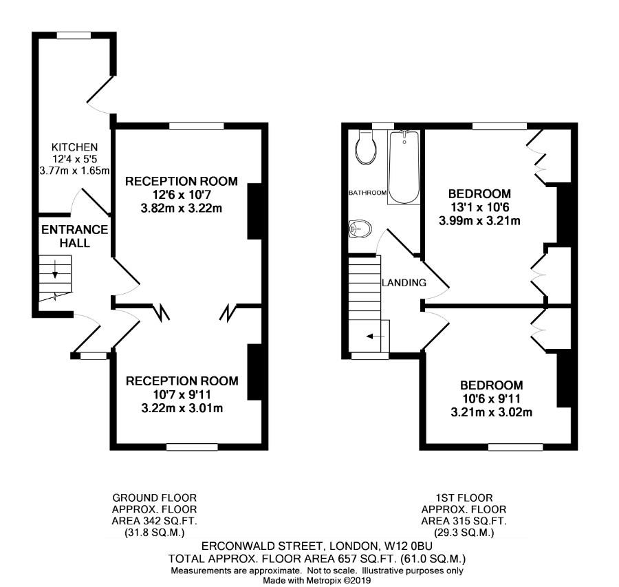 Total approx. Floor Area 342 SQ.FT (31.8 SQ M.)