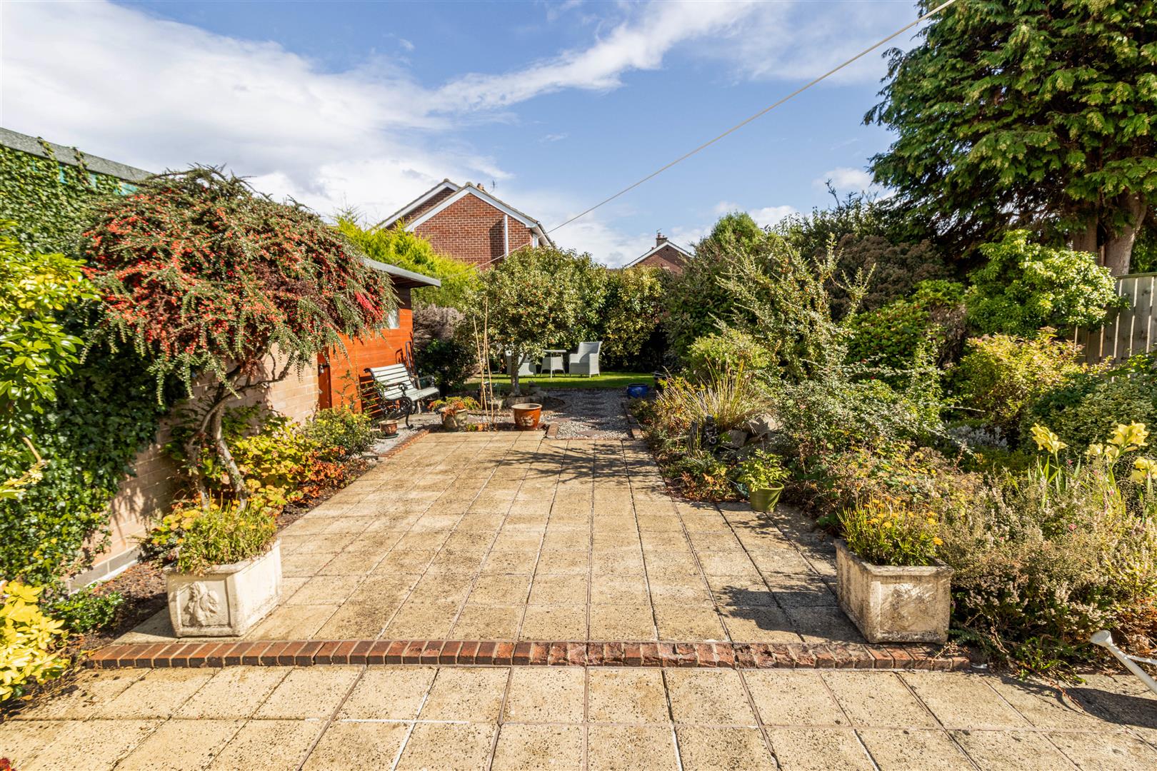 Externally, the home boasts a low-maintenance front garden and a beautifully stocked rear garden with a blend of patio and lawned areas, providing a private and tranquil outdoor space. A driveway provides ample off-street parking and leads to a detached garage offering further secure storage.