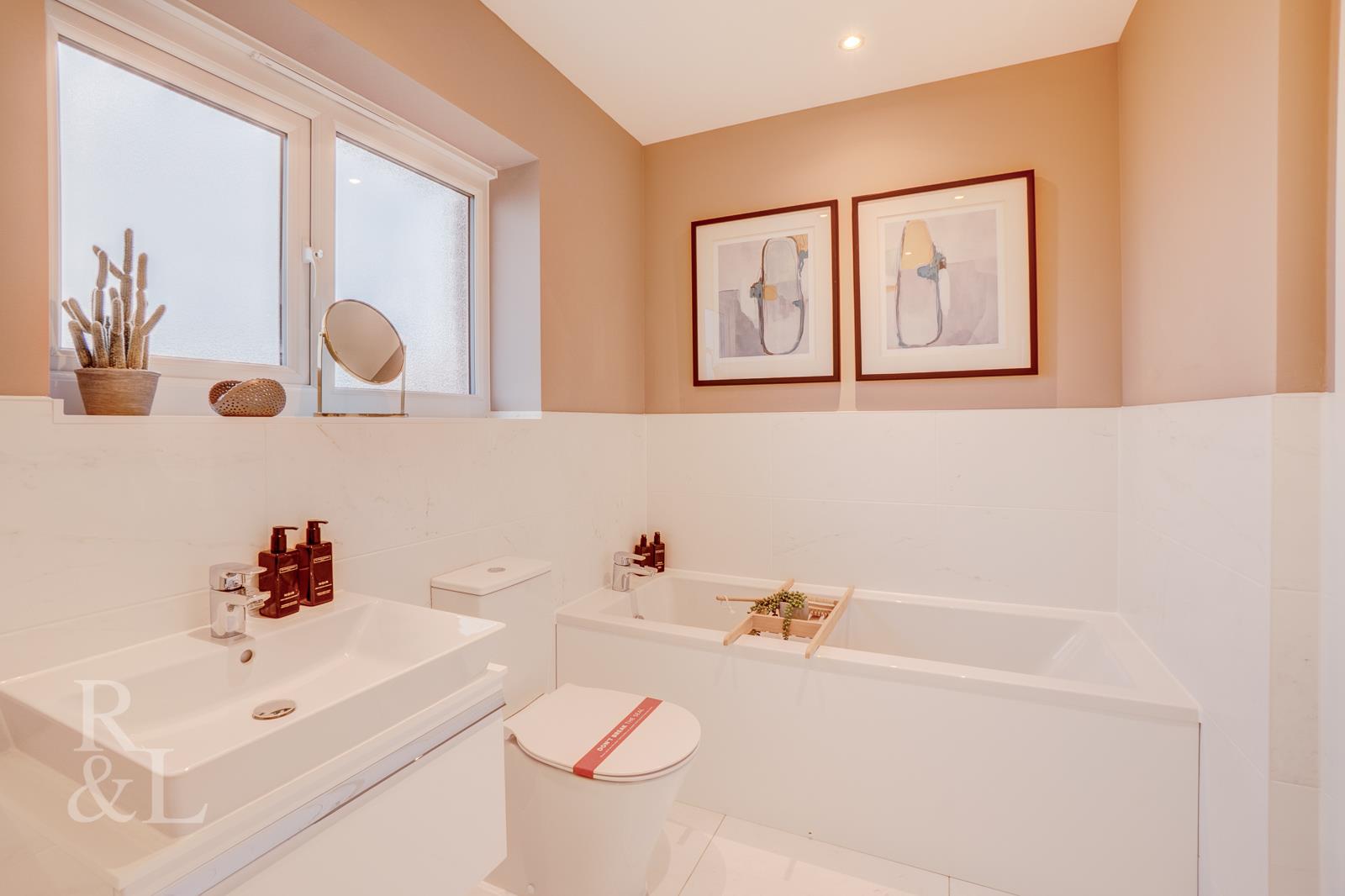 Upstairs, two of the four bedrooms offer en-suite bathrooms with walk-in showers, while the main bedroom also boasts a walk-in wardrobe. There's a centrally located family bathroom with a bathtub, and both of the remaining bedrooms are also spacious, with room for personalising with additional storage as desired.
