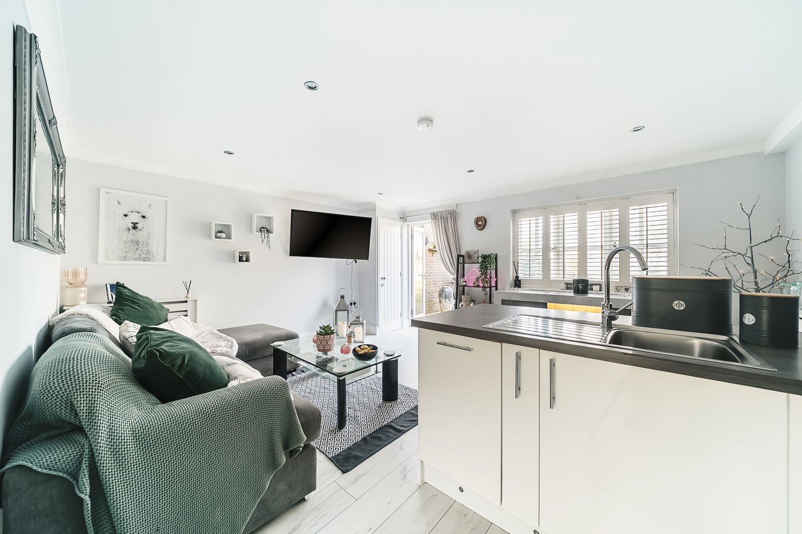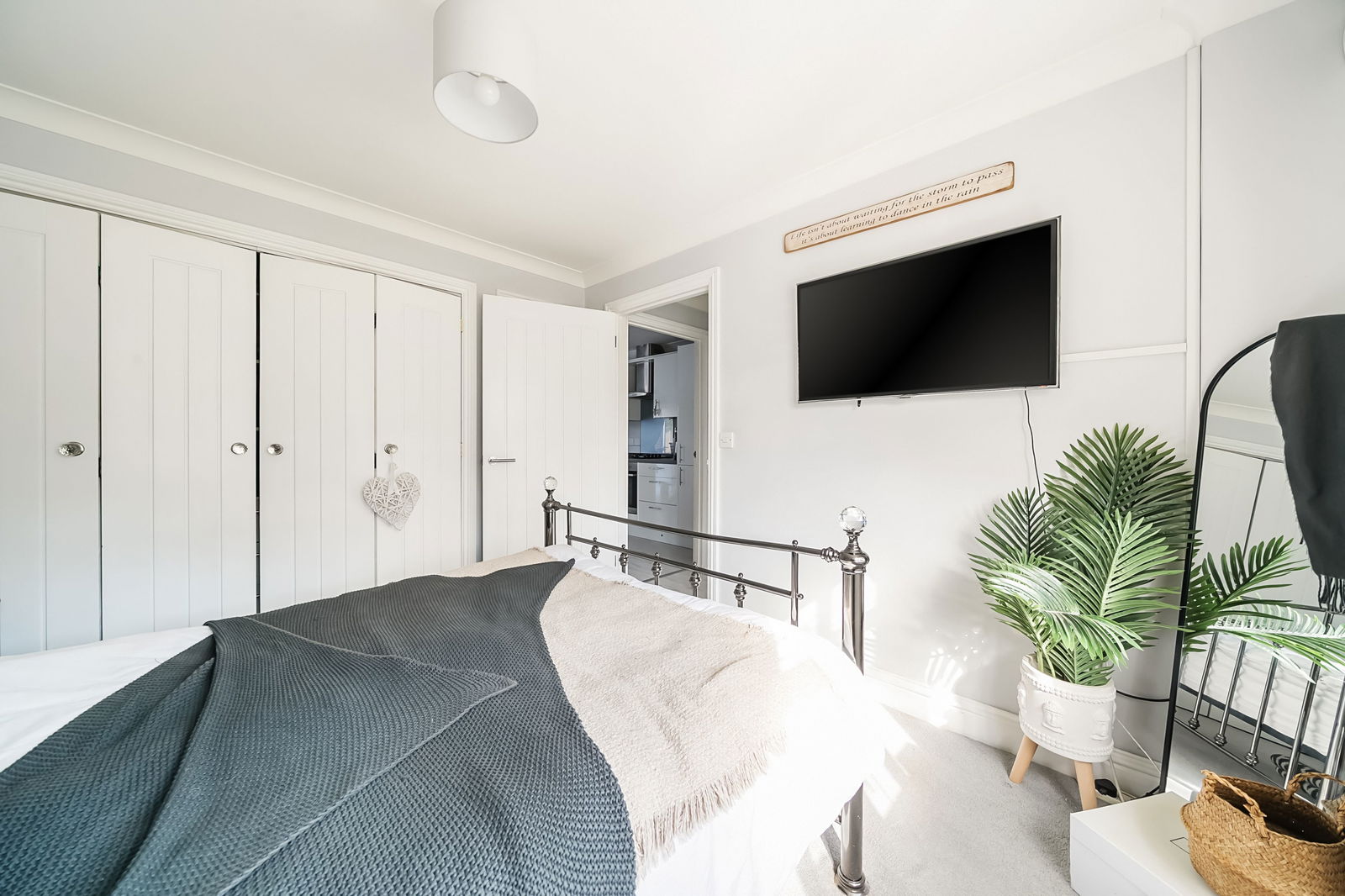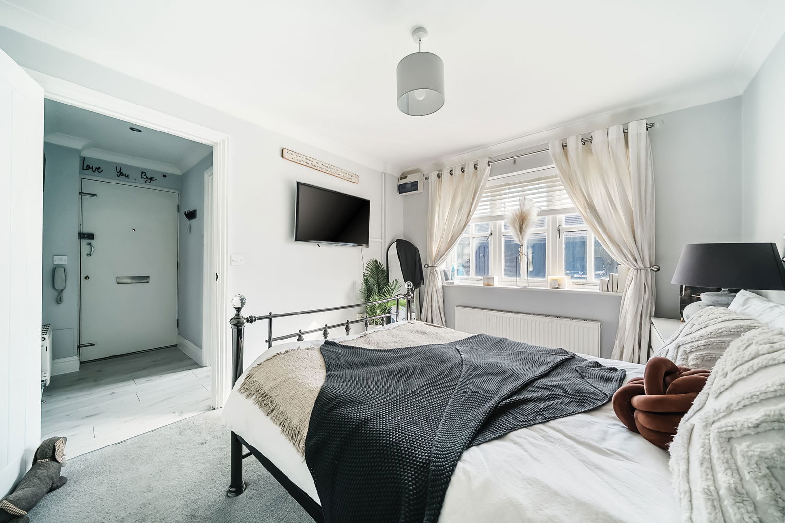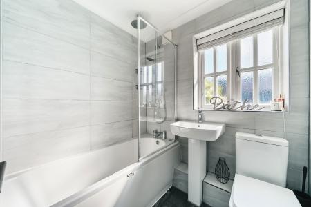 Back in to the property, the generous proportions continue, with a large bedroom with built in wardrobes, complemented by a modern bathroom, all of which are decorated in modern and relaxing tones.