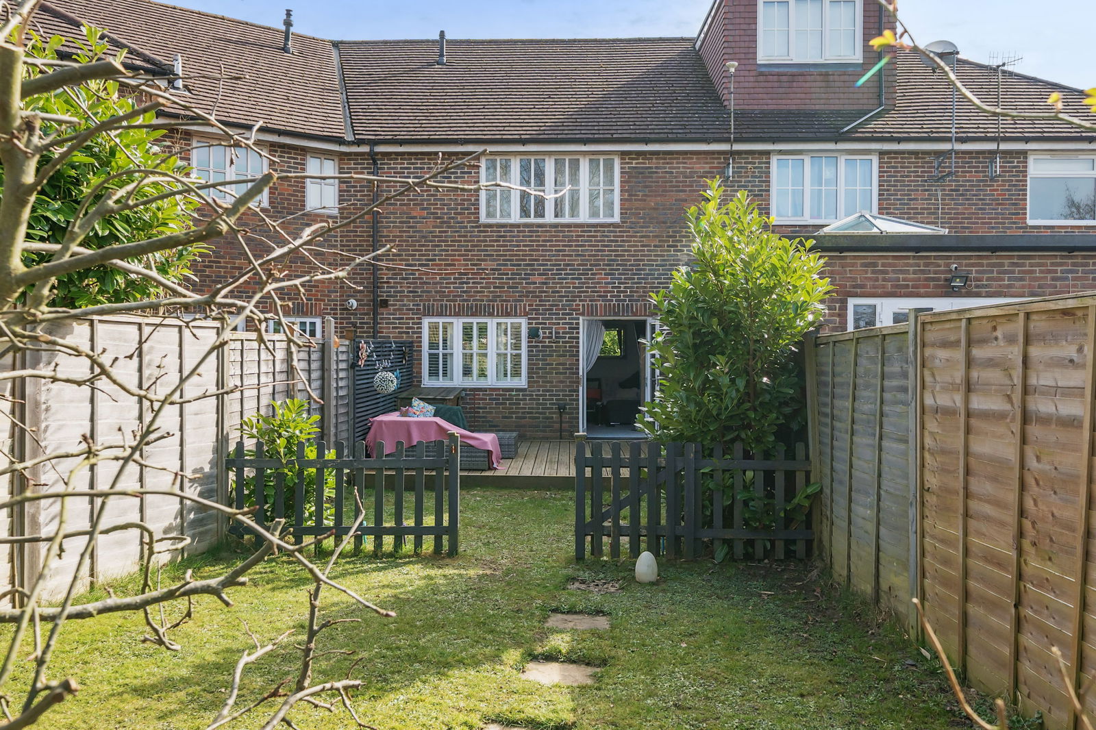 Heading outside to the rear garden, there is a decking area immediately outside the French doors, perfect for entertaining and enjoying the nice weather. A garden shed towards the back of the garden provides handy storage for all the outside furniture.