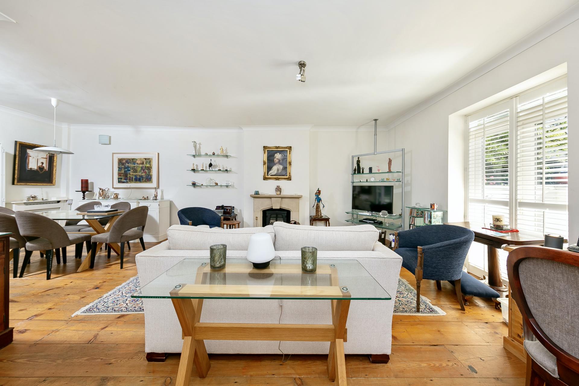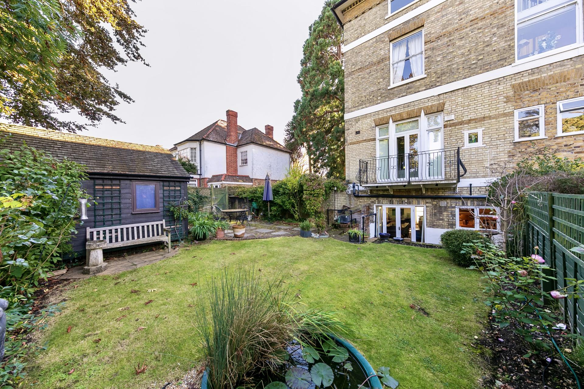 An impressive two bedroom split-level character conversion apartment (95 sqm / 1,022 sqft) situated in East Molesey's premier residential road with direct access to private gardens as well as demised parking for two / three cars and a garden studio / home office.