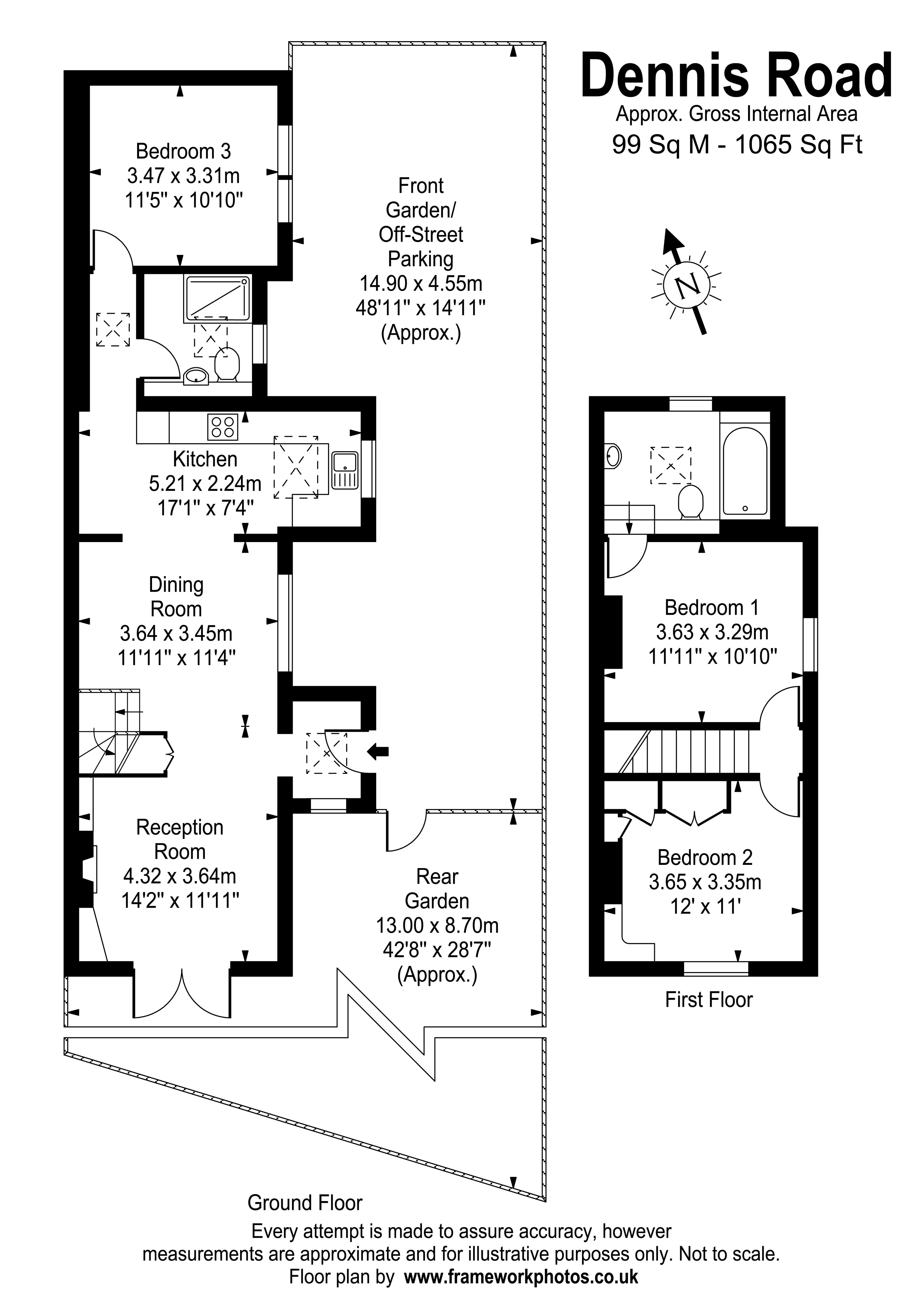 Location: Dennis Road is a quiet residential side street within short walking distance of East Molesey's main high street (Walton Road), & Hampton Court Railway Station & Village. The local area has an abundance of local amenities, enjoys superb schooling options as well as many open acres of parkland found in Hurst Park, two royal parks (Bushy and Home) and Molesey Heath nature reserve. East Molesey boat and cricket clubs are found alongside the Thames towpath which are well supported by the local community.