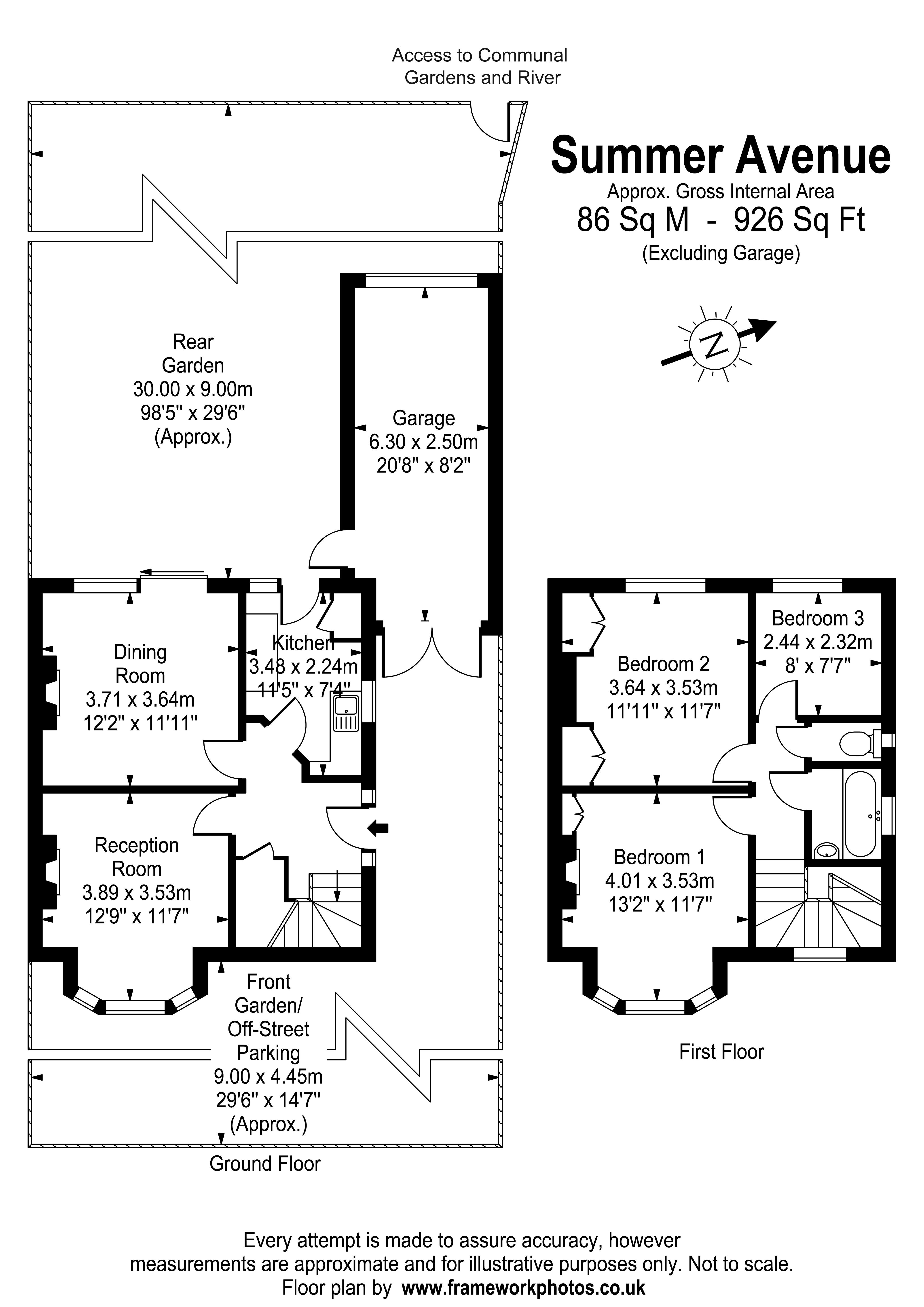 Additional note. We are informed that the rear communal land is held on a renewable lease from the Environment Agency, managed by a residents association – Will O' Wisp (River Mole) Ltd. A membership fee of £100 a year gains full access and use of the meadowland, slipway and river.