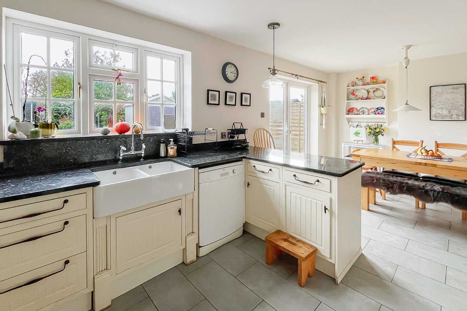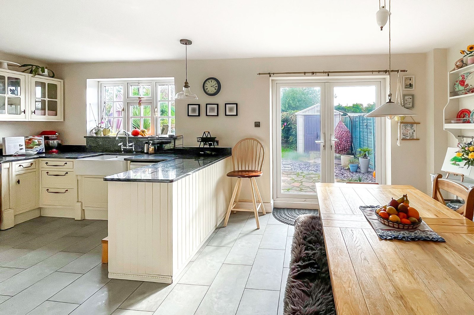 Step inside through to the entrance porch and hallway, where stairs lead to the first-floor landing. The cosy living room, complete with a characterful open fireplace, provides a relaxing retreat after a long day. French doors open into the spacious full width kitchen/family room, which overlooks the rear garden and offers ample space for a family dining table perfect for everyday meals and entertaining. Upstairs, you'll find three well-proportioned double bedrooms and a stylish family bathroom featuring a roll-top bath and a separate shower. Outdoor Living at Its Best, the large rear garden is a true highlight, offering plenty of space to unwind, play, or entertain. Side access from the front driveway leads to additional seating areas and generous space for parking ideal for multiple vehicles, a caravan, or even a boat. Don't Miss Out, this is a rare opportunity to secure a fantastic family home in a family location. Contact us today to arrange your viewing!