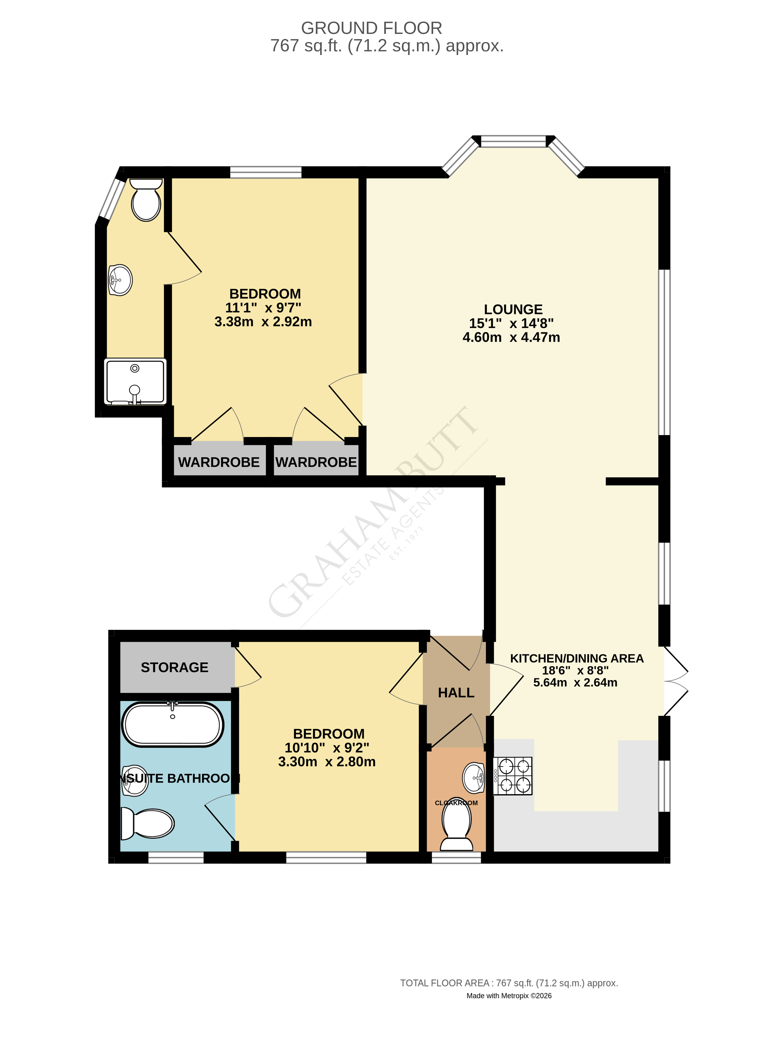 Bedroom 110'10" x 9'2" (3.3m x 2.8m).