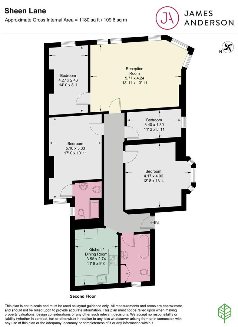 An opportunity to purchase a substantial period apartment set within a building of Townscape Merit offering over 1180 sqft of bright and spacious lateral accommodation. The property is presented in excellent condition throughout and occupies the second floor with far reaching panoramic views over and across the skyline. The accommodation is arranged to provide a bright 18ft reception room, a separate kitchen/breakfast room, principal bedroom with en-suite shower room, three further bedrooms and a family bathroom. The property boasts a wealth of period features throughout and has recently replaced all windows with new double glazing. Sheen Lane is in the heart of East Sheen village moments from Mortlake Station providing direct access to Central London. The outstanding Thompson House school is just a short walk away, as is the High Street of East Sheen and Richmond Park. The property further benefits from no external management charges.