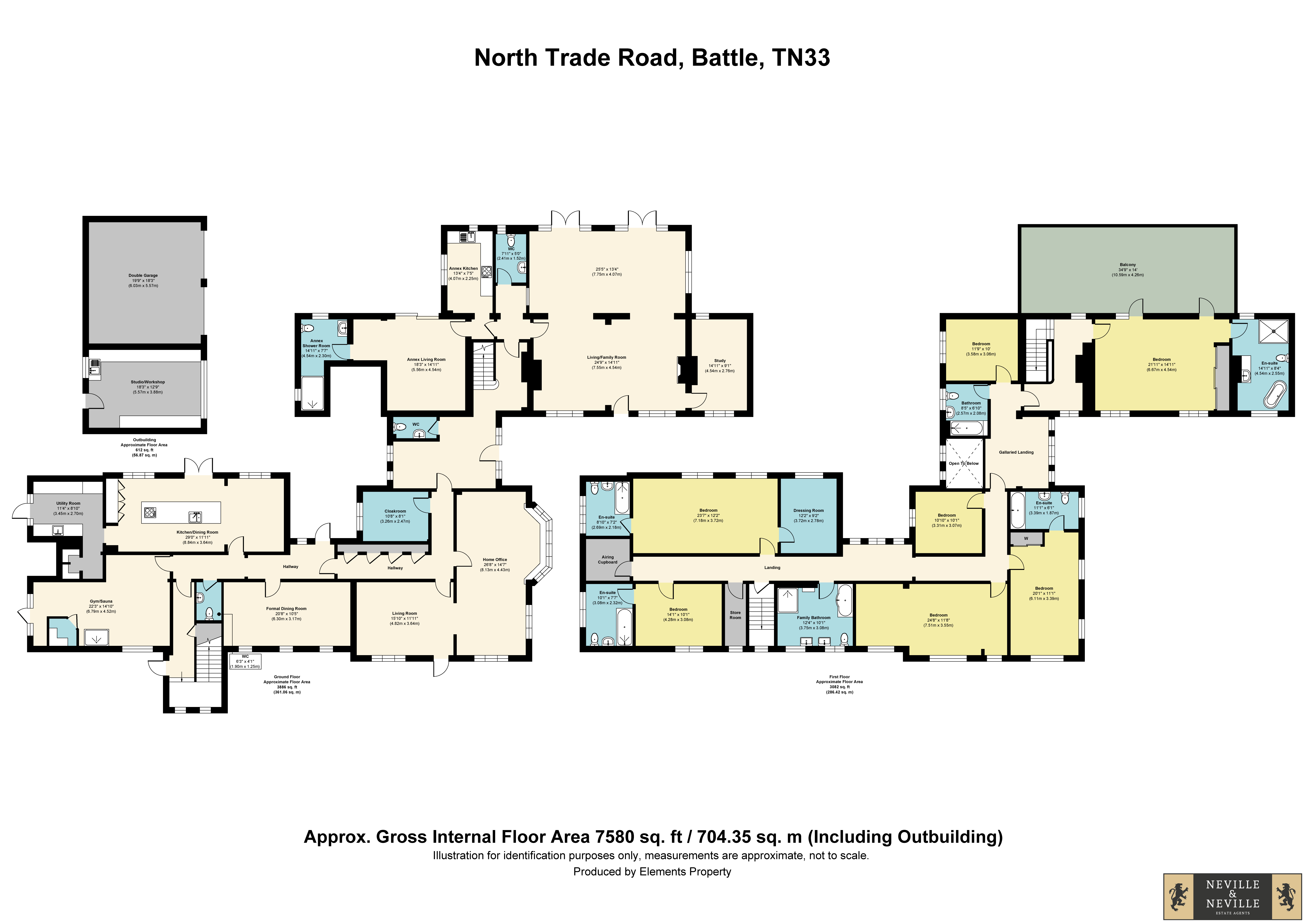 • Substantial 7 bedroom, 7 bathroom detached family home extending to approximately 7,580 sq ft (including outbuildings) with an integral Annexe, double garage and studio