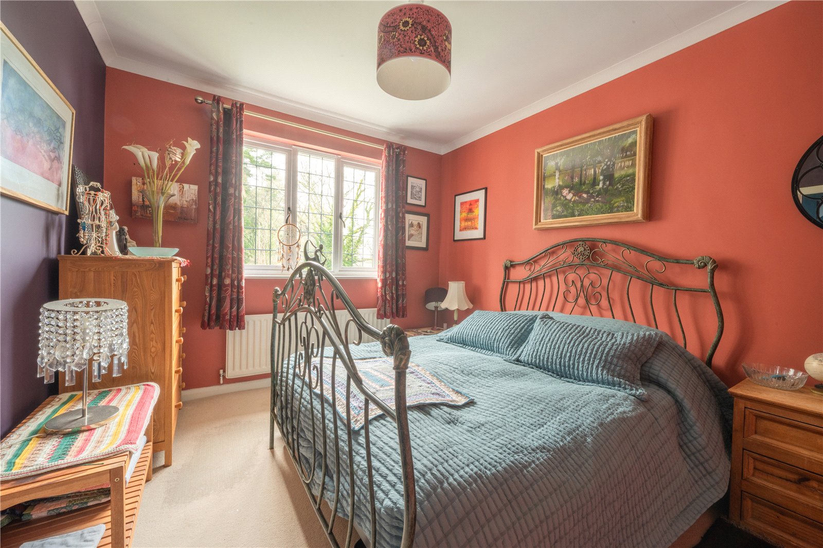 BEDROOM 6: This attractive bedroom is well proportioned and full of character, enjoying a pleasant outlook through a central window that allows good levels of natural light. The room is tastefully presented with warm tones and features ample space for a double bed and freestanding bedroom furniture. A comfortable and inviting space, it is well suited for use as a guest bedroom or secondary double, offering both charm and practicality within the overall accommodation.