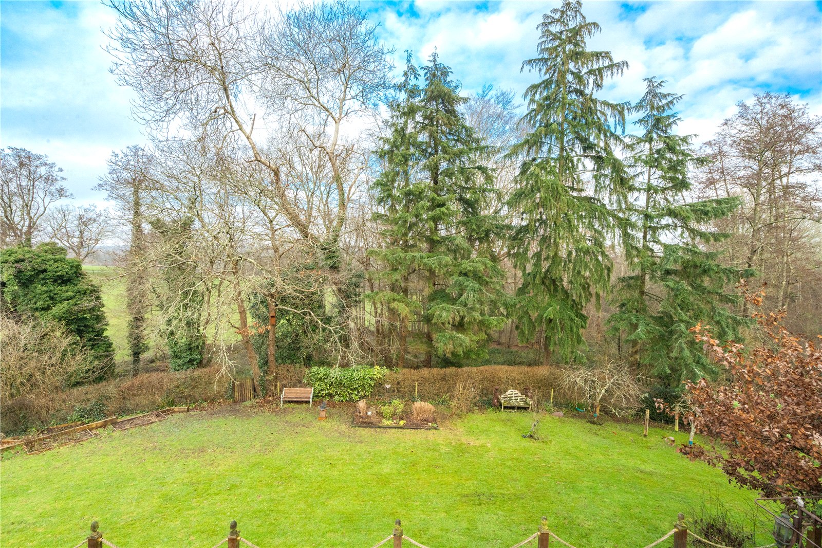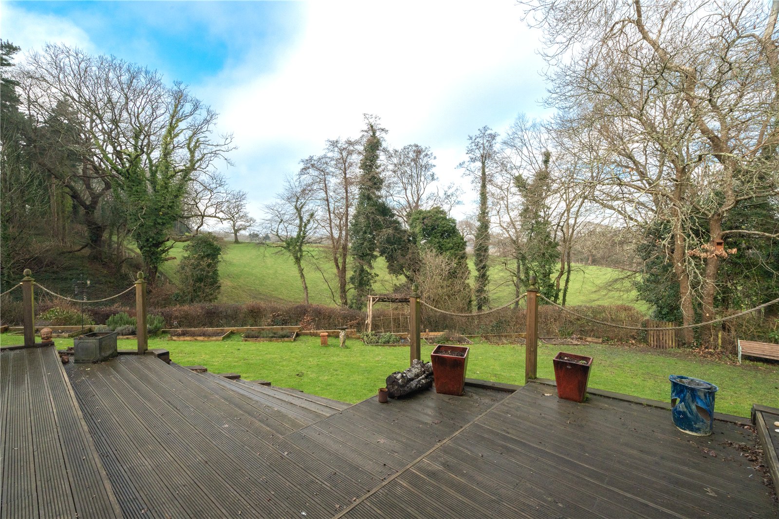 • Beautifully landscaped gardens and grounds with expansive lawns, woodland backdrop, raised decked terrace and countryside views