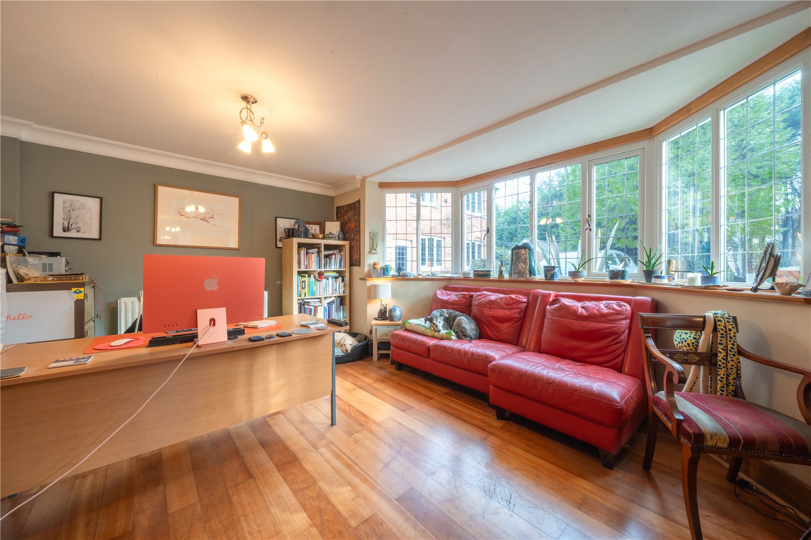 The room comfortably accommodates substantial desk furniture, seating and storage, allowing for a well-organised workspace without feeling crowded. Warm wooden flooring adds character and practicality, while neutral wall tones provide a calm backdrop that can easily be adapted to suit individual tastes.