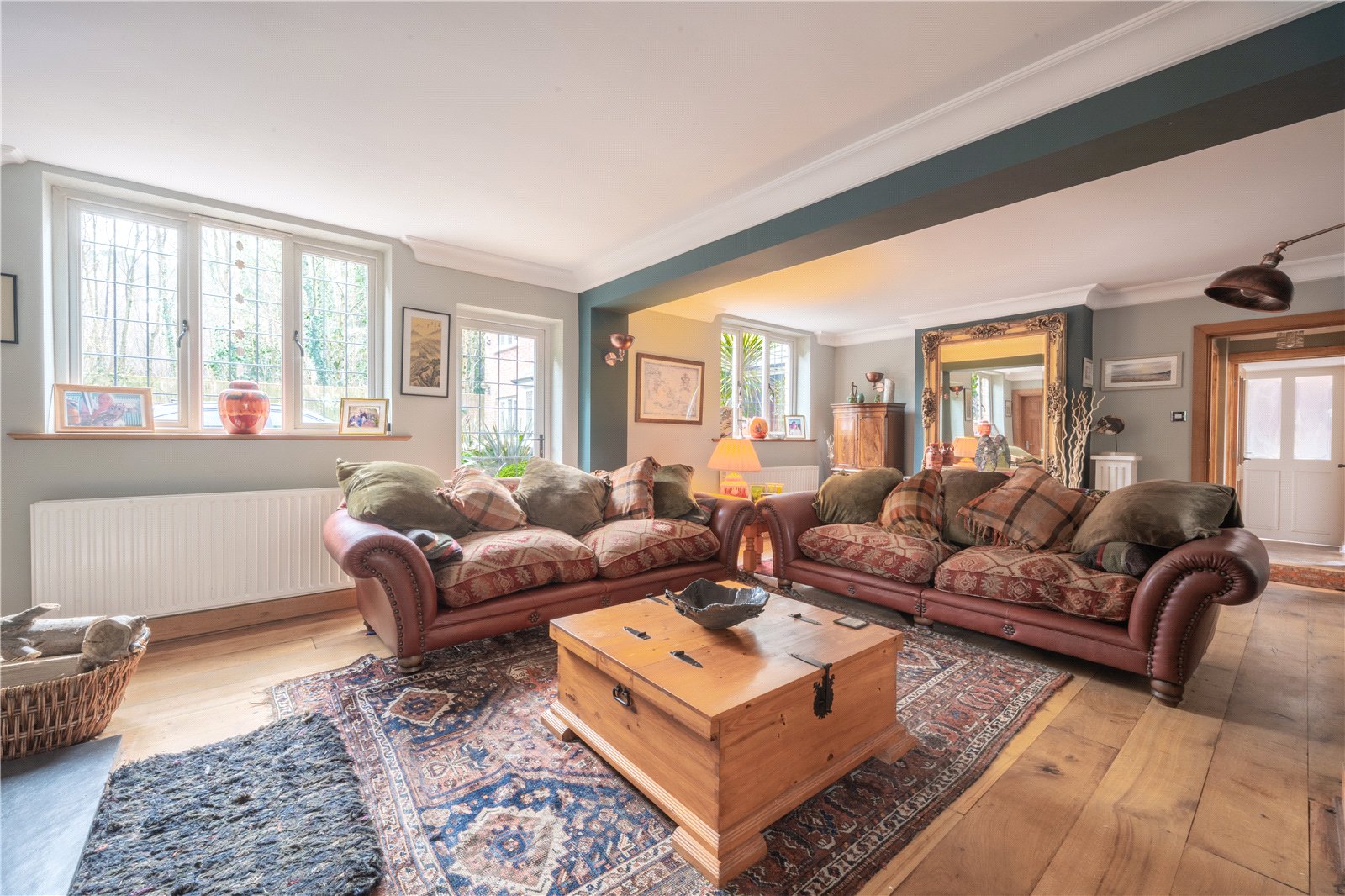 LIVING ROOM: The living room is a beautifully proportioned and inviting space, offering an excellent balance of comfort and character. Large windows allow natural light to flood the room, enhancing the sense of space and creating a bright, airy atmosphere throughout the day.