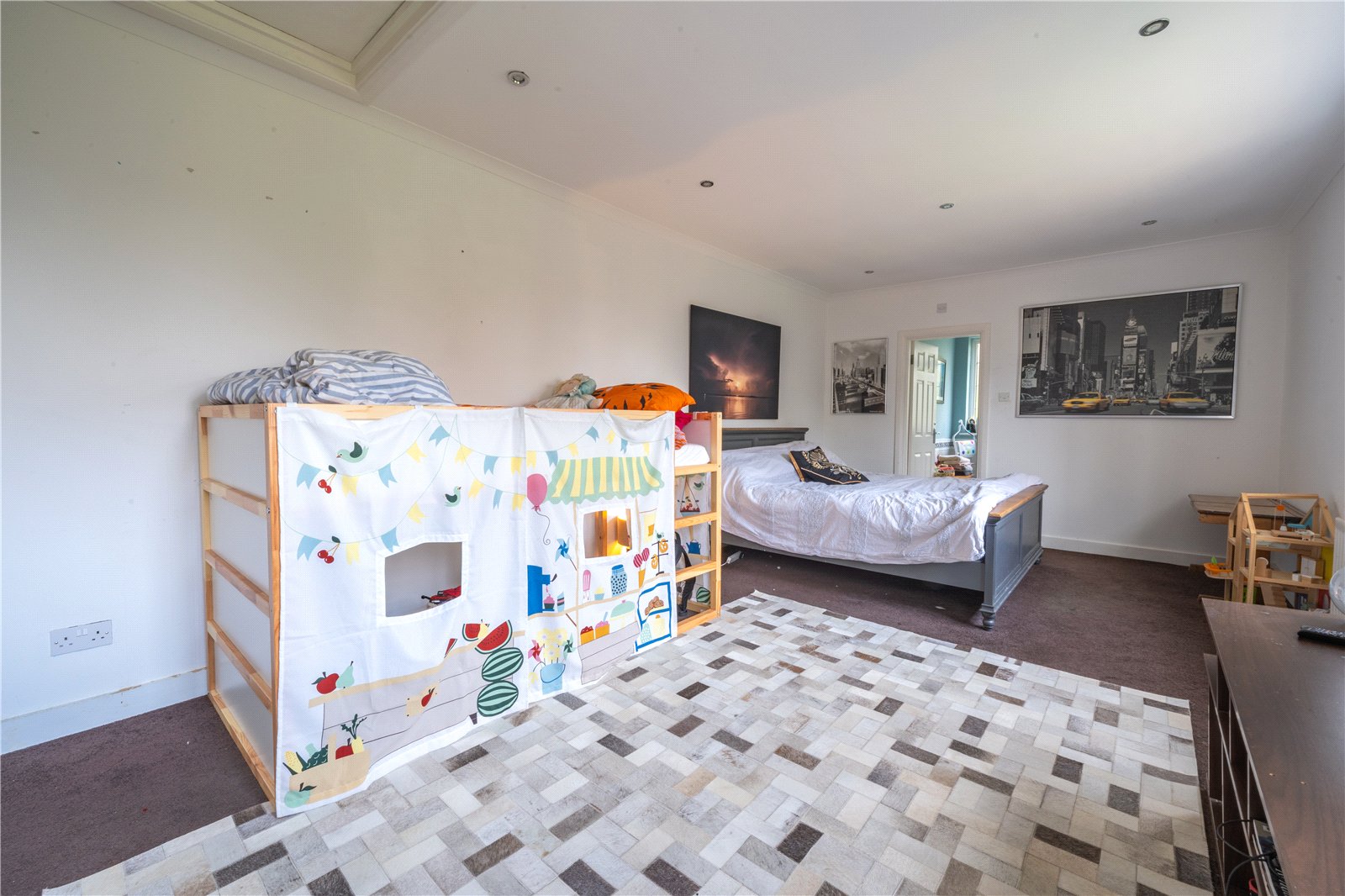 There is ample space to accommodate a double bed along with additional furniture such as wardrobes, storage units or a seating area, while the neutral décor provides a calm backdrop that can be easily personalised. Recessed ceiling lighting further enhances the sense of space and practicality.