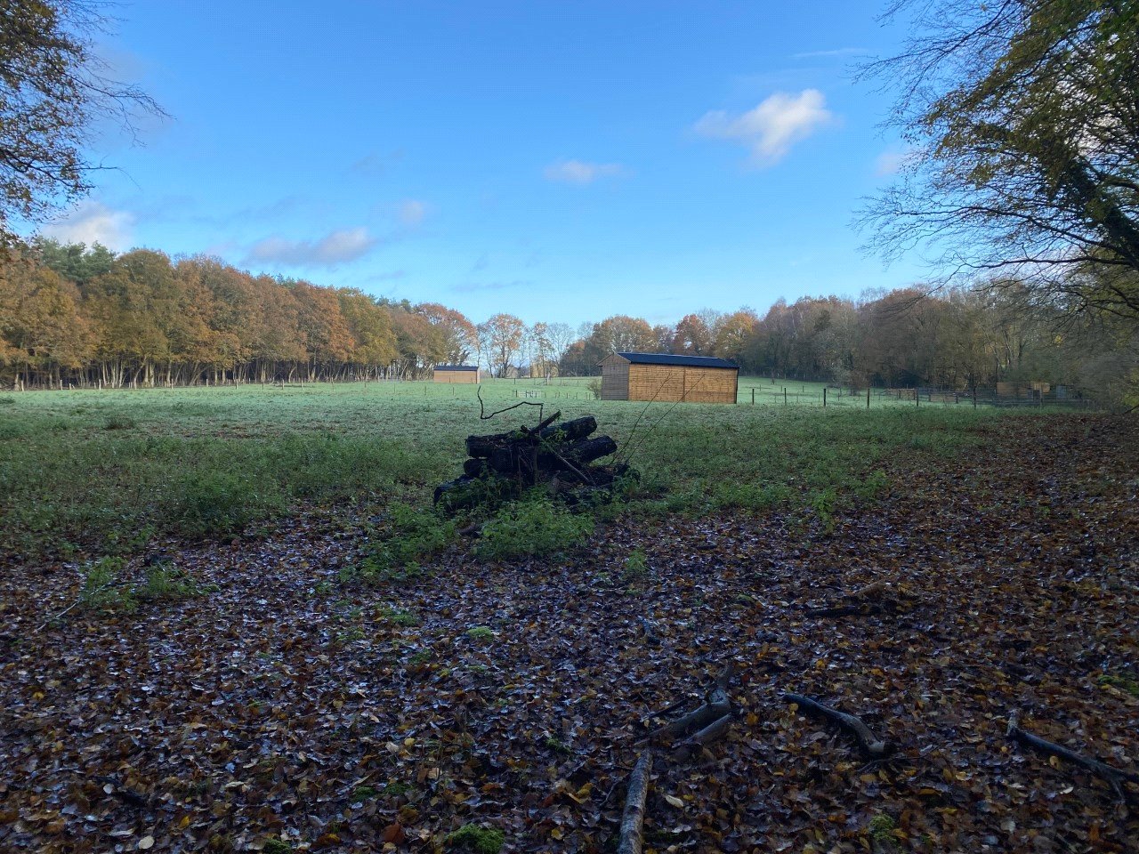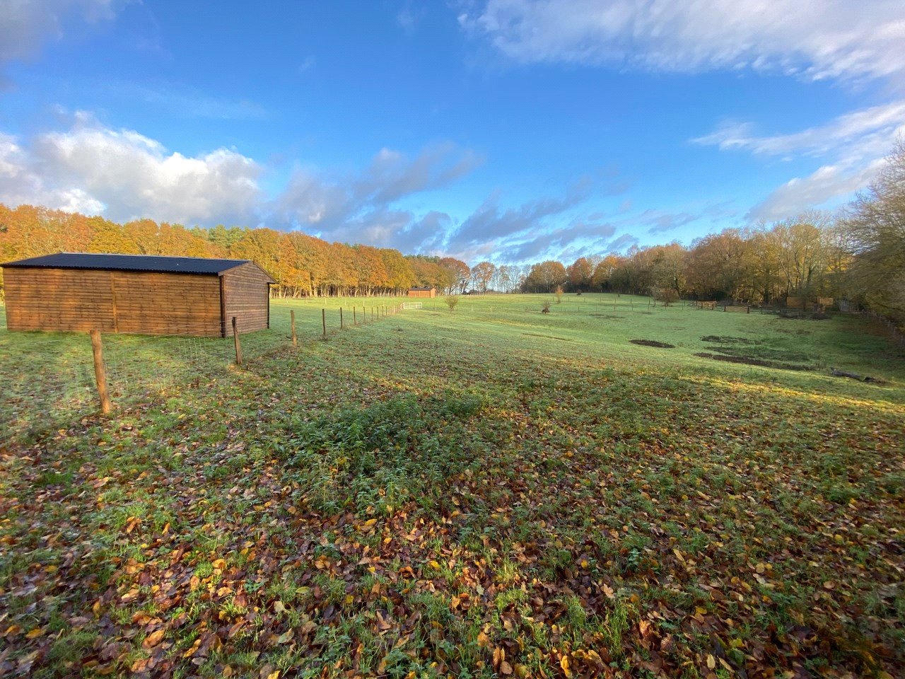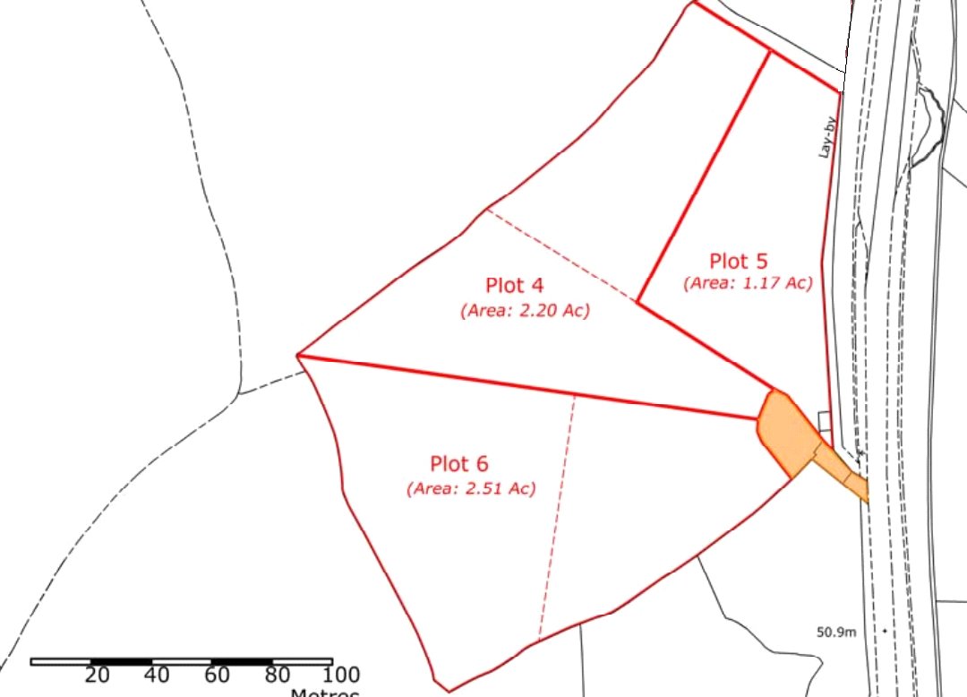 A collection of 3 agricultural plots. In total there are 5 paddocks totalling 6.15 acres with a small barn/outbuilding and two mobile field shelters.