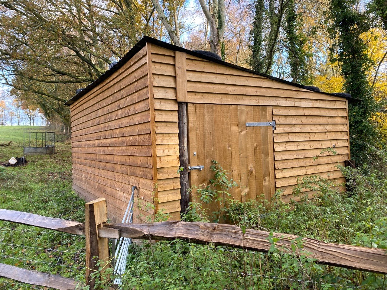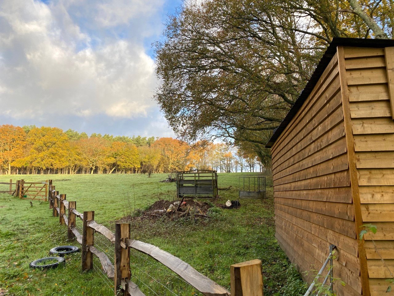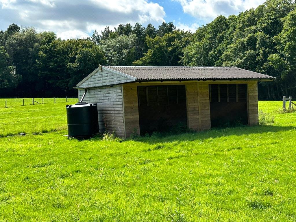 The outbuilding has recently had the exterior cladding replaced and could be used for storing agricultural feed & equipment or housing livestock. There are also two double field shelters that are 24 foot long complete with metal skids for ease of relocation, they also have gutters installed so it would be easy to install water harvesters and trough to provide water for livestock if required.
