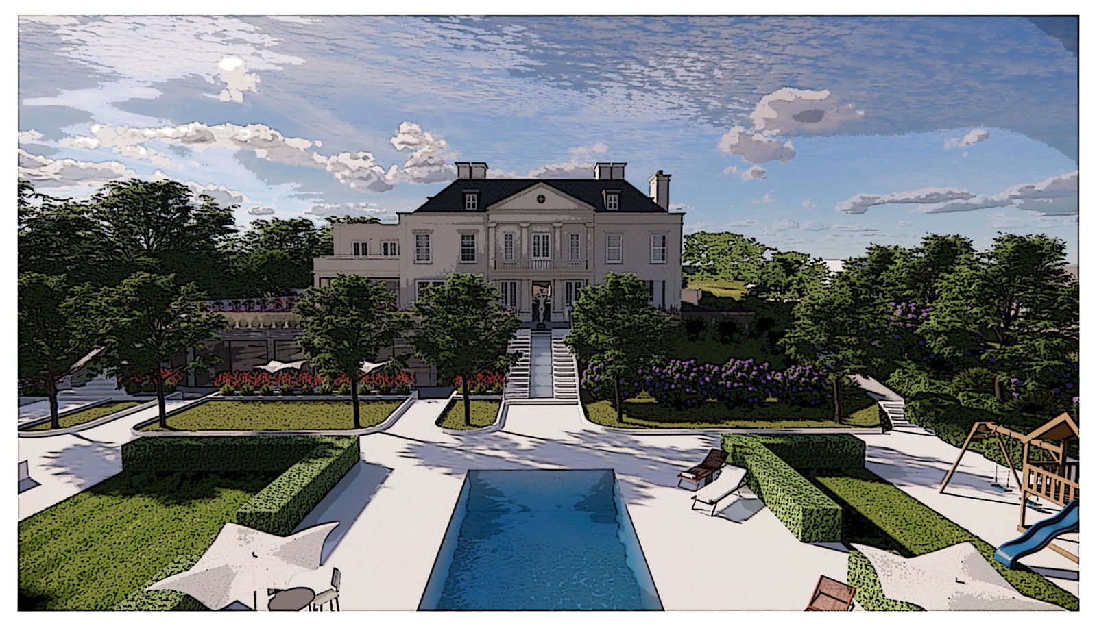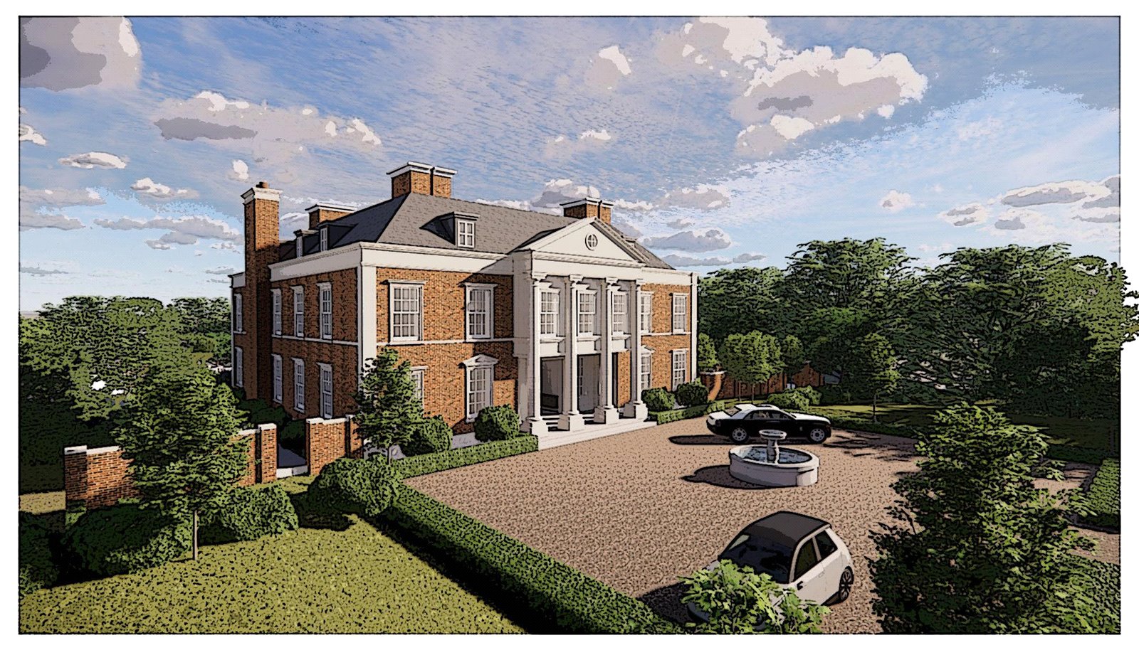 • Planning permission for probably the finest bespoke luxury building plot with the most fabulous permission granted for an extremely unique and incredibly substantial and imposing neo classical Georgian styled mansion of circa 19,000 square feet