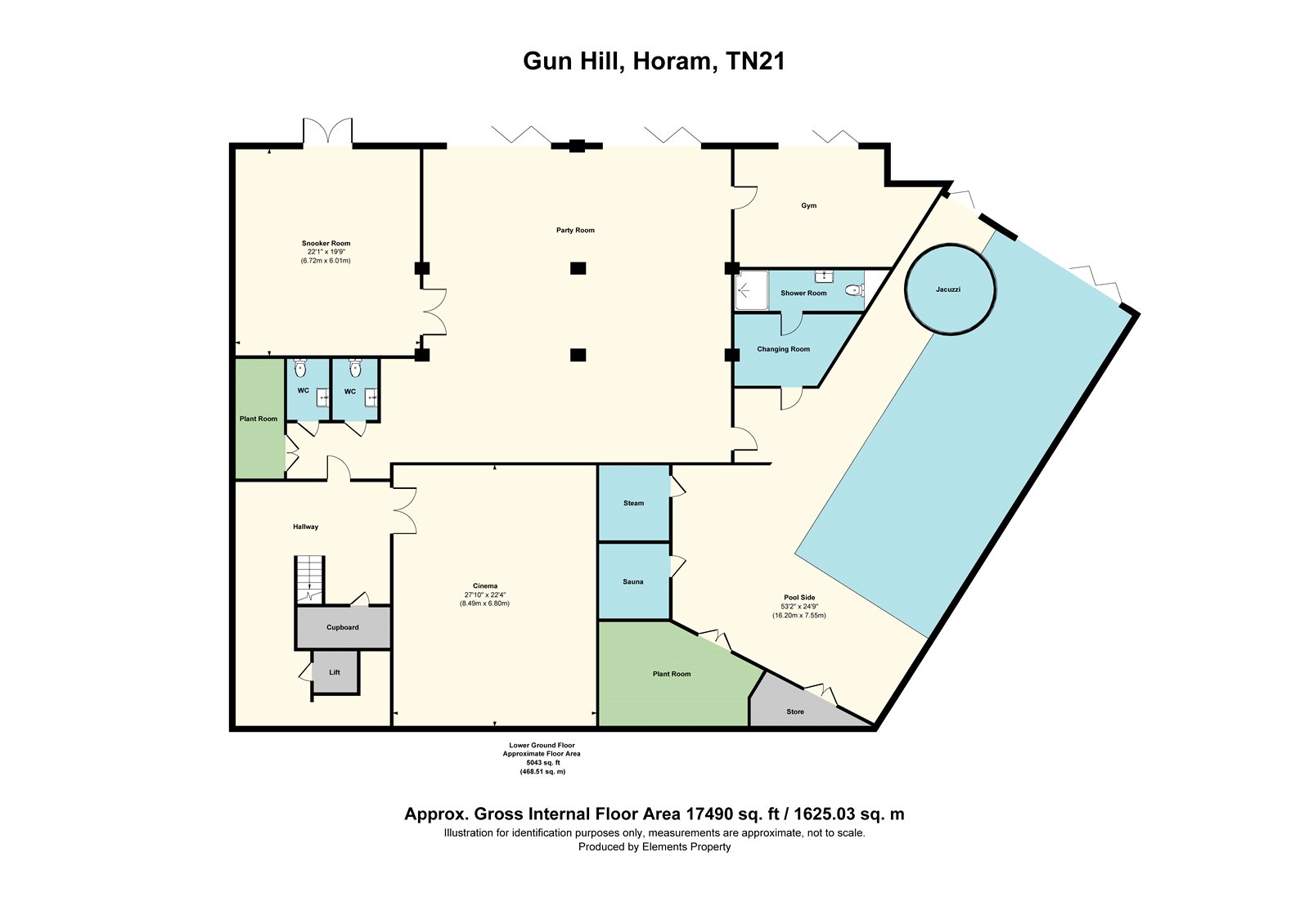 LOWER GROUND FLOOR APPROXIMATE SIZE FOR GROSS INTERNAL FLOOR AREA IS 5,043 SQFT (468.51 SQM)