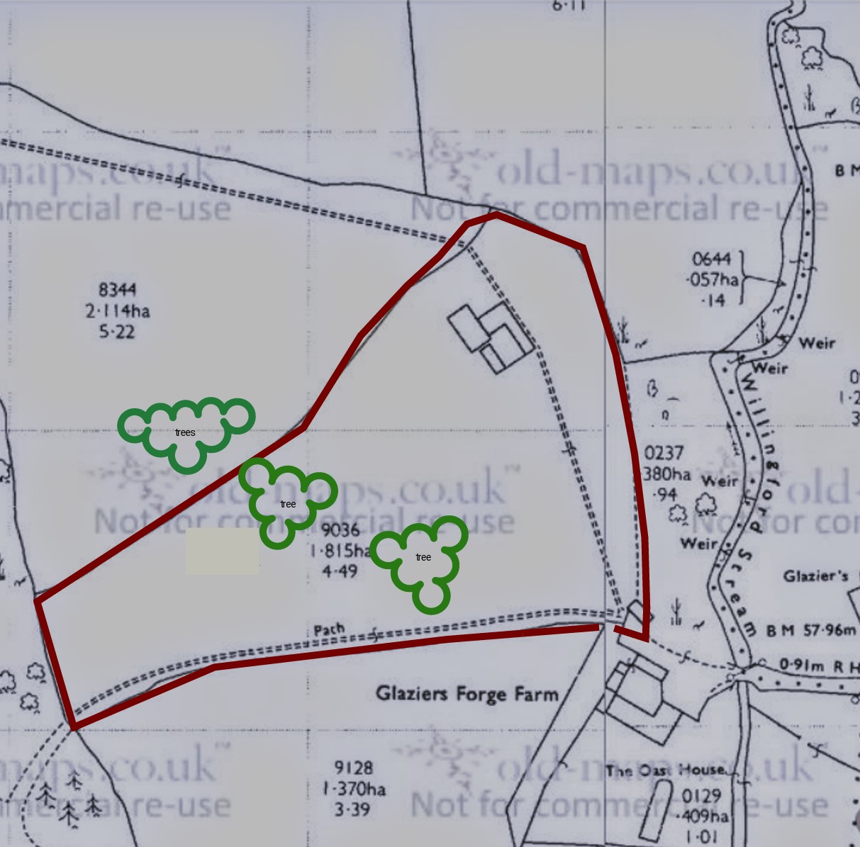 LOCATION: Situated at the end of an old rural country lane, which we understand is called Glaziers Forge Lane Dallington next to Glaziers Forge Farm, Dallington TN21 9JJ in the field to its right and accessible also by a right of way.