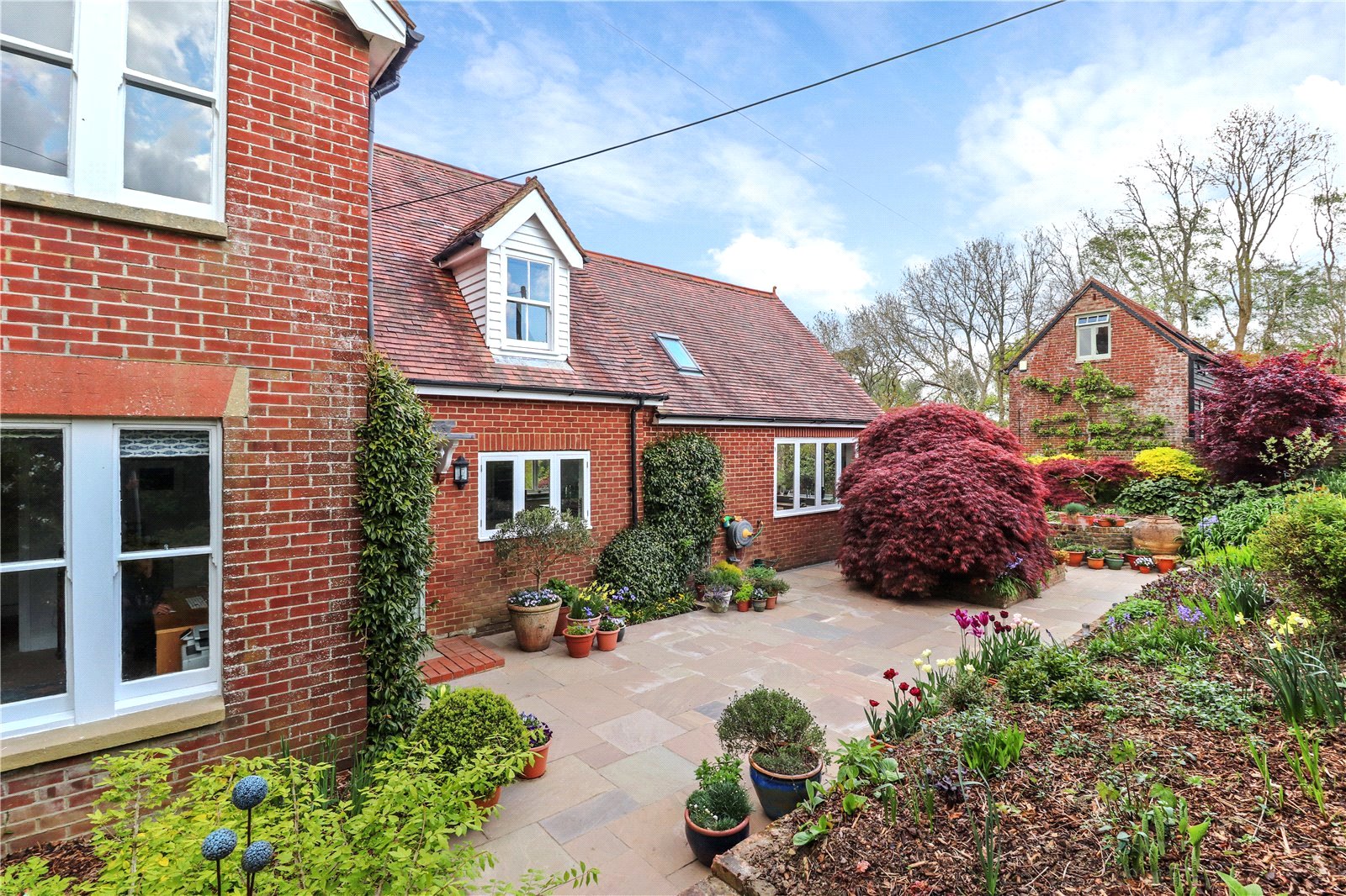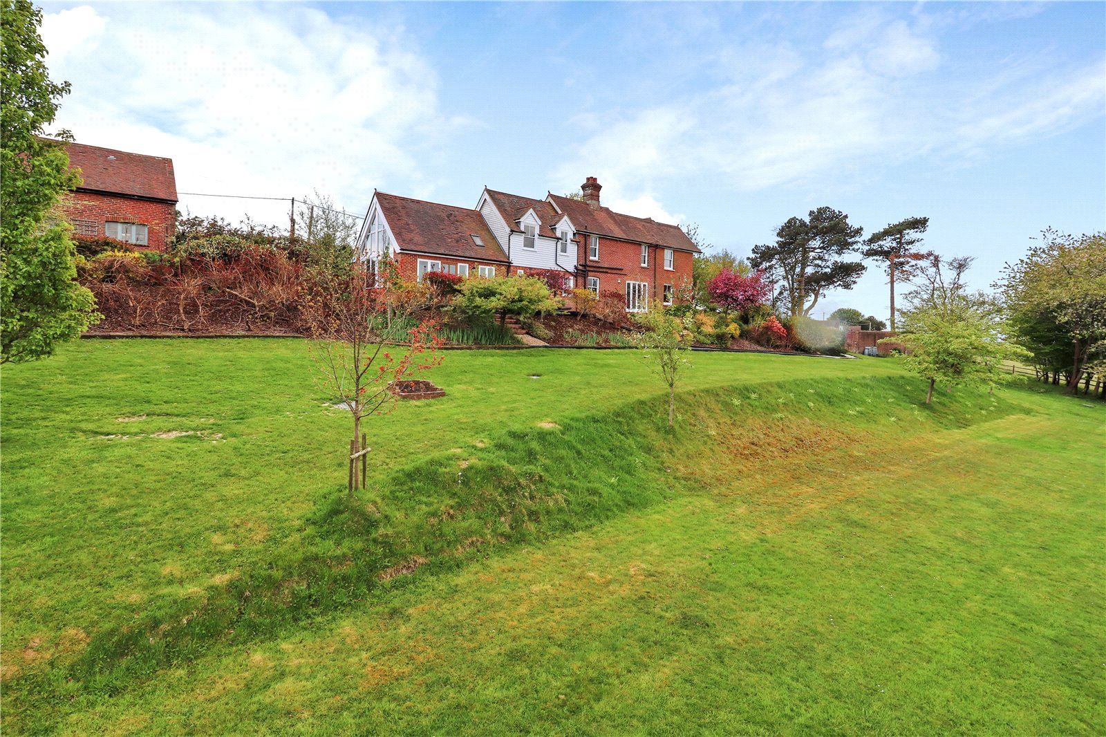 Furthermore, there is an additional area below the lawns that has been carefully nurtured as a rewilding section with a wood coppice and natural pond, which could possibly be further enhanced if required.