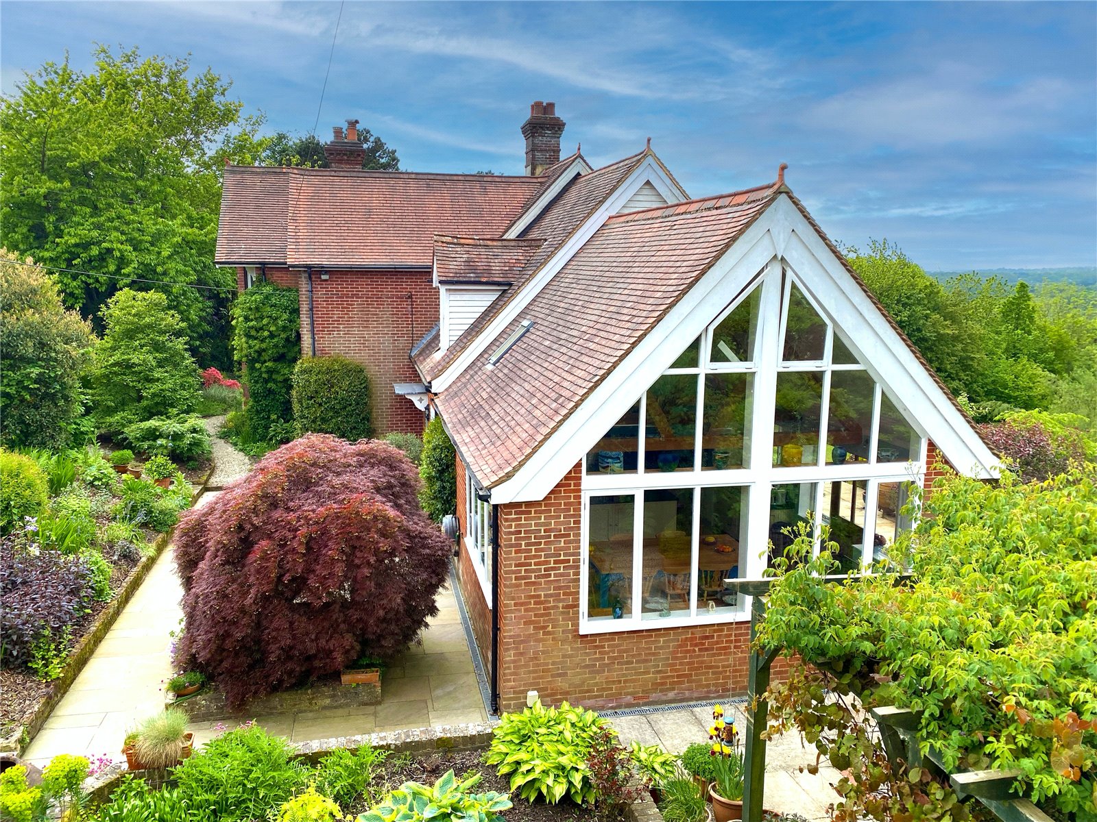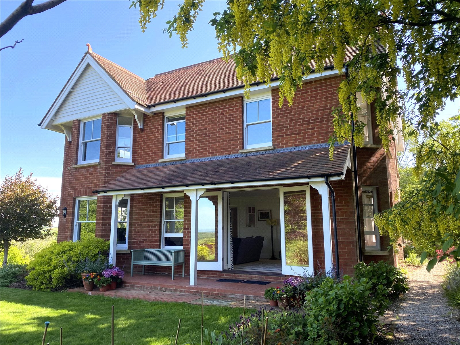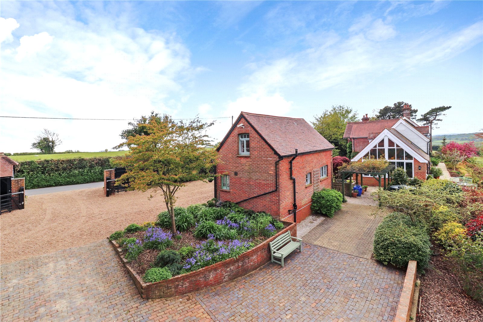 OUTSIDE: This perfectly located elegant and imposing country residence which enjoys probably the finest views in Sussex, is complimented with exquisite and handsome carefully designed and tastefully executed landscaped gardens and grounds in excess of 3 acres.