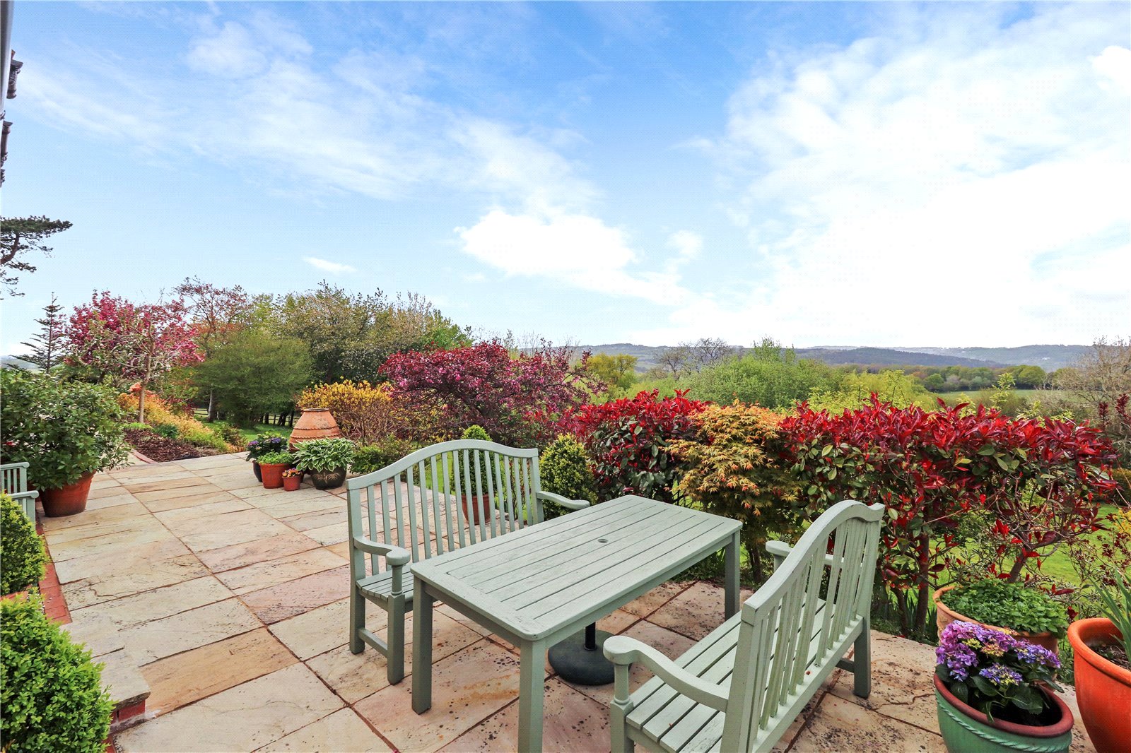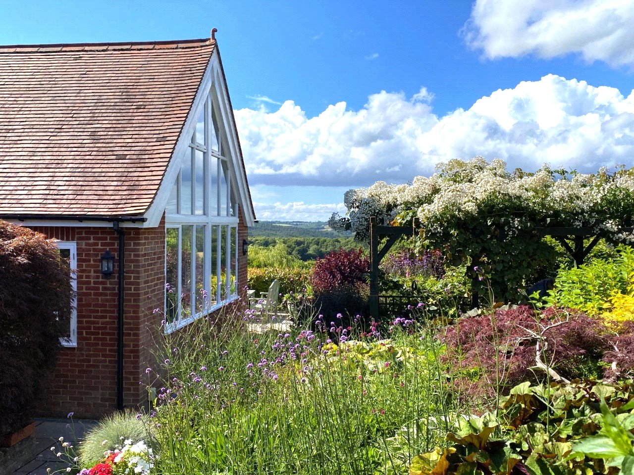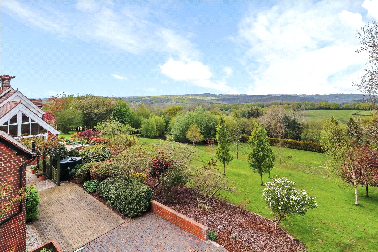 SOUTHERLY FACING SIDE GARDEN: Again, this more southerly facing part of the in excess of 3 acres of total grounds is blessed with very similar breath taking and far-reaching rural views, including beyond to the South Downs National Park.