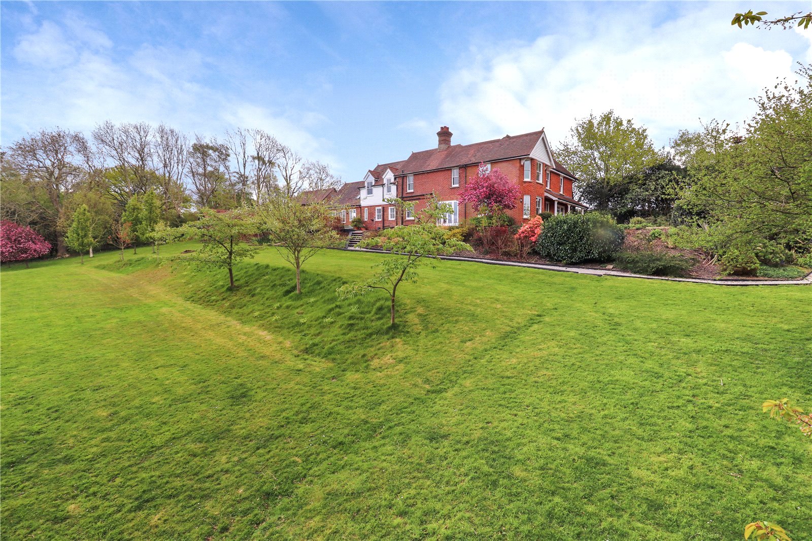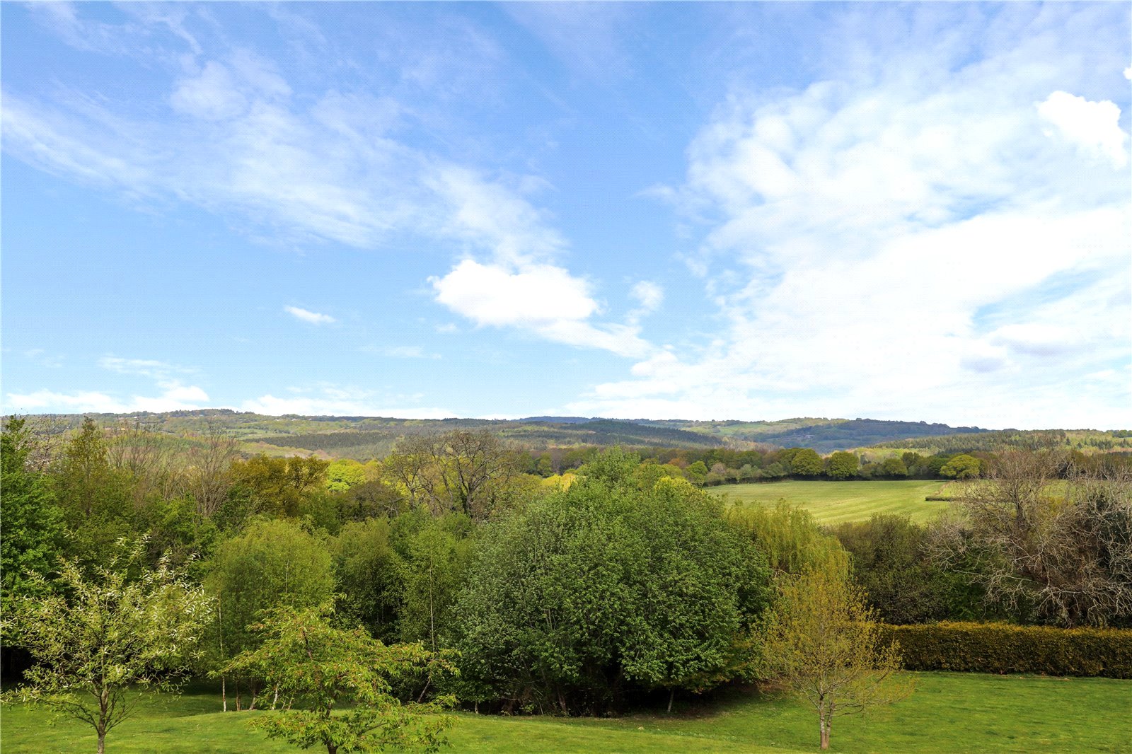 REAR GARDEN: This is where the majority of the in excess of 3 acres of grounds lay, with vast lush terraced lawns situated below the splendid paved sun terrace adjoining the rear exterior of the main residence from which are blessed with heavenly panoramic far-reaching views of the Sussex countryside and its undulating hills as far as the eye can see.