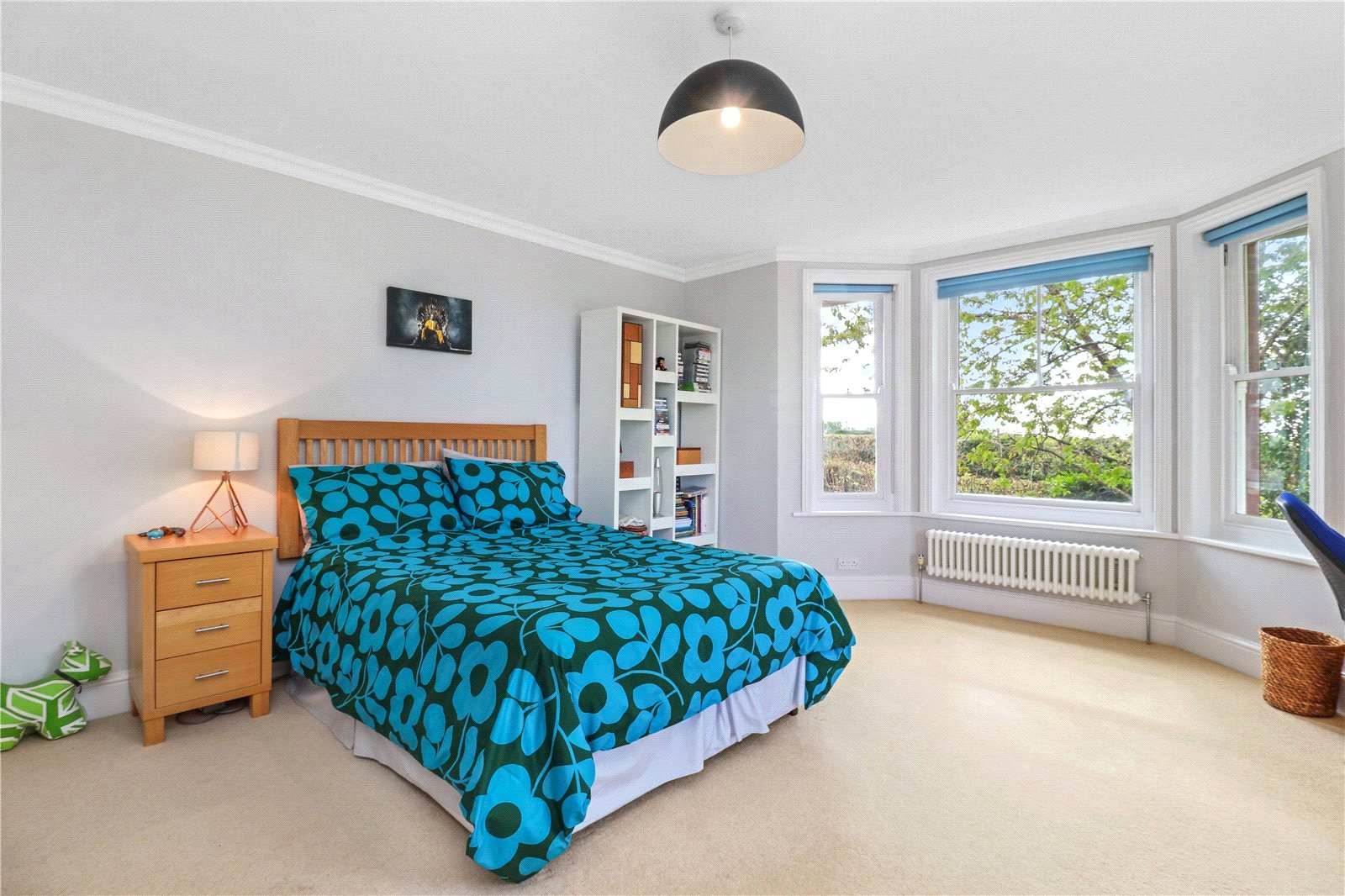 BEDROOM THREE: A double sized double aspect room with vintage styled radiators, coved ceiling, fitted wardrobe cupboards, ceiling light and dur to the size of this room, there may be potential to incorporate an ensuite shower room subject to planning. Furthermore, this naturally double aspect bright room has incredible far reaching rural views from the front bay window to the coast and on a clear day the sea, as well as further southerly far reaching and breath-taking views from the other sash window all the way to the South Downs.
