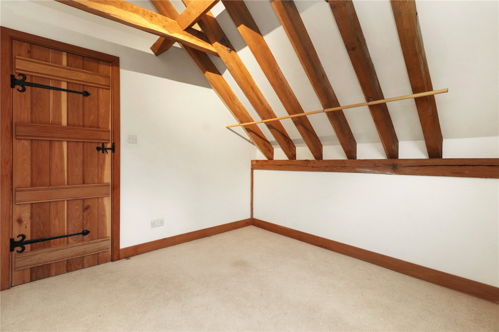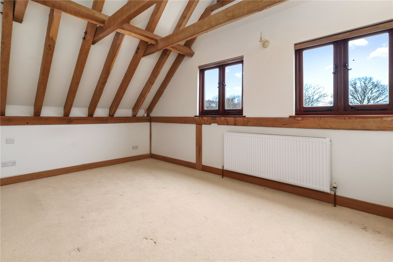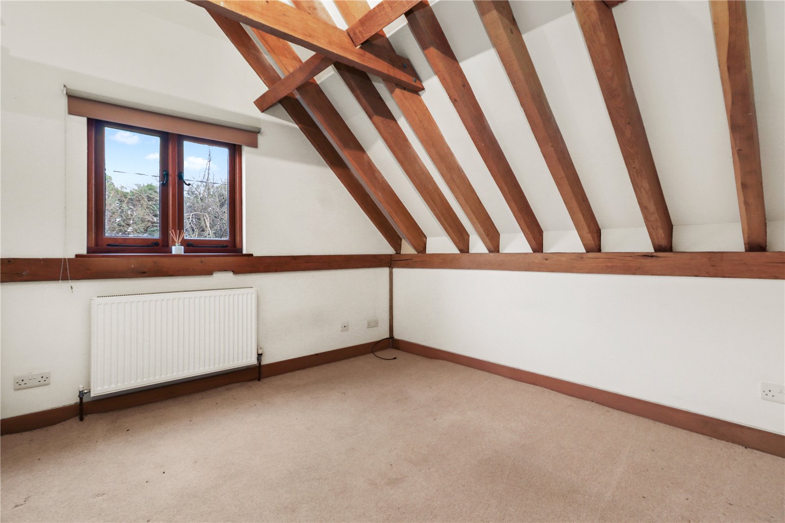BEDROOM THREE: A double sized room with vaulted beamed ceiling, radiator and double-glazed window with aspect to delightful rural views.