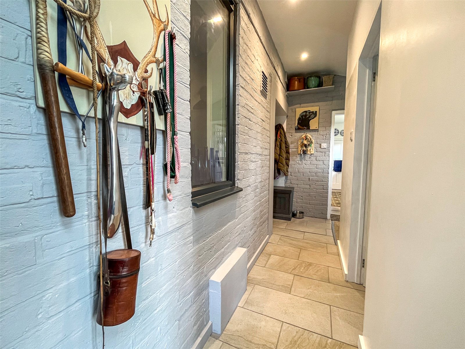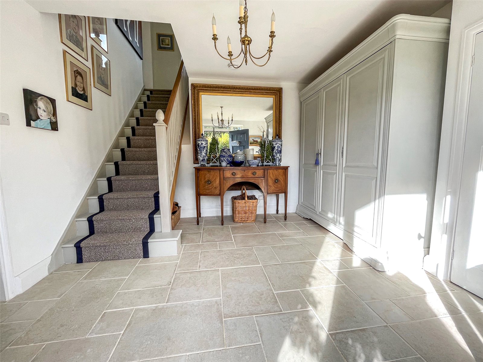 The rear and side gardens located to the southerly aspect have a recently landscaped elegant Indian stone paved sun terrace with wonderful views beyond over the grass paddocks and further adjoining countryside.