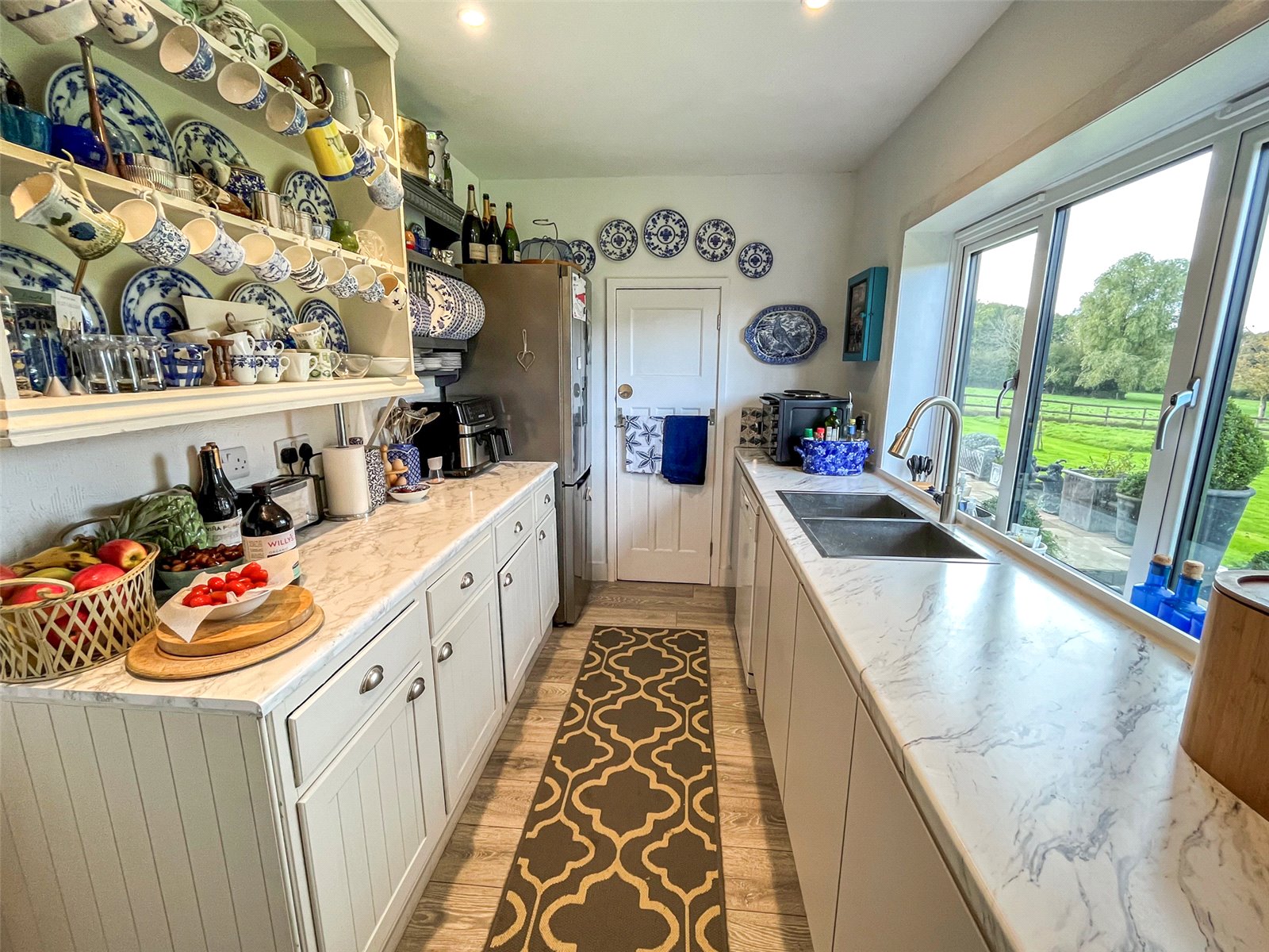 SECONDARY KITCHEN / 1ST UTILTY ROOM: Adjoining the main kitchen / breakfast room and approached by single door. Comprising of modern ranges of base units with marble effect worktops, twin sink unit with mixer tap, space for dishwasher, space for large American fridge freezer, down lights and windows with a most wonderous aspect over the rear gardens and the adjoining six acres.