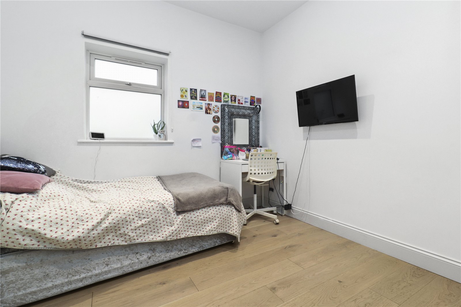 DOWNSTAIRS BEDROOM: A double sized room with radiator, oak floors, feature radiator, double glazed window.