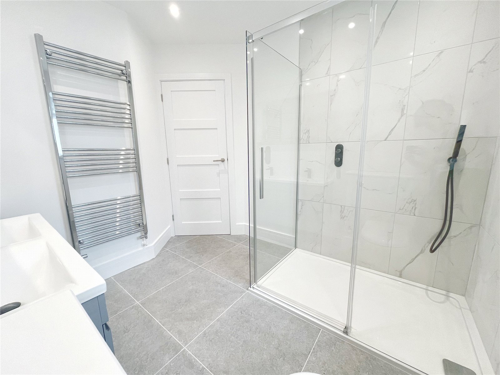 BEDROOM TWO WITH LUXURY ENSUITE SHOWER ROOM: A double sized room with double glazed window with aspect over the front gardens, radiator, door to luxury ensuite shower room.