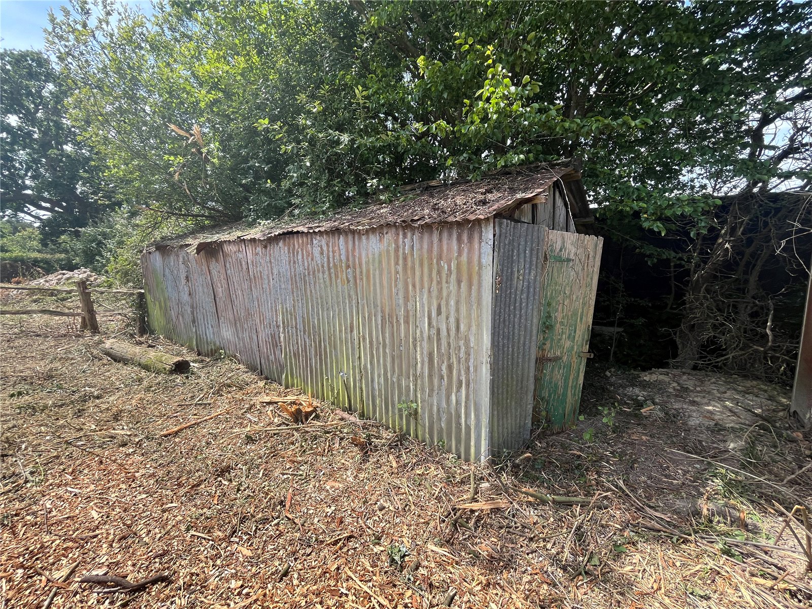To the left boundary there is an existing detached old building with a pitched roof and concrete base measuring circa 30 meters / 322 square feet. In addition, there has been a large container on site next to the building for in excess of a decade. PLEASE NOTE: The old existing outbuilding and neighbouring land having stabling and equine facilities will create a logical precedence for planning permission to be favourably looked upon for the granting of stabling, as well as possibly also for an all weather menage.