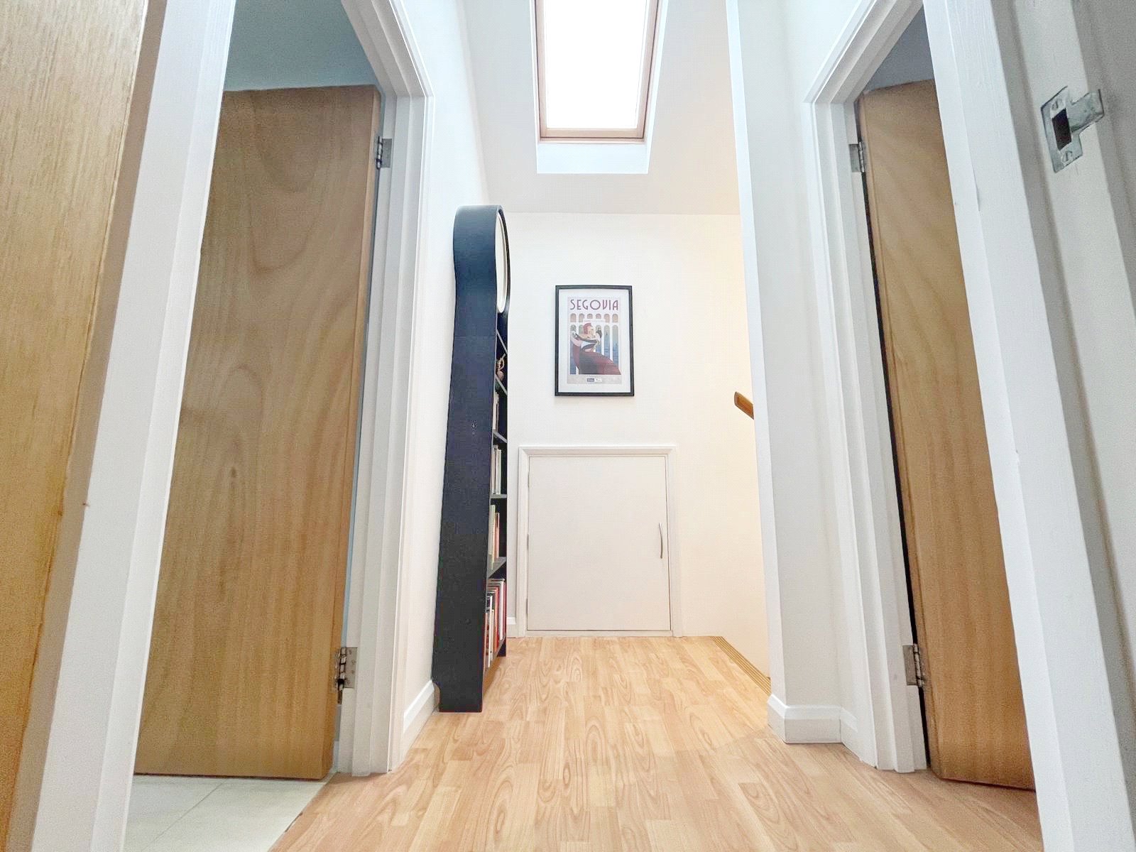 FIRST FLOOR ACCOMMODATION: Fabulous ultra-modern wooden and glazed staircase leading to the first-floor landing with a skylight window, feature lighting, eaves storage cupboard, doors leading off to bedrooms, 1 and 2, as well as a first-floor family bathroom / shower room.