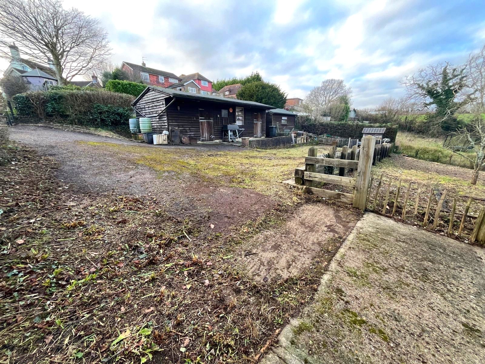 The yard has a hard standing entrance and both parking / storage areas to the front and side to the left side of the top half of the entire site. Also, on the top half of the site there are existing storage buildings and a further workshop, still currently being used for the storage of building equipment and building materials.