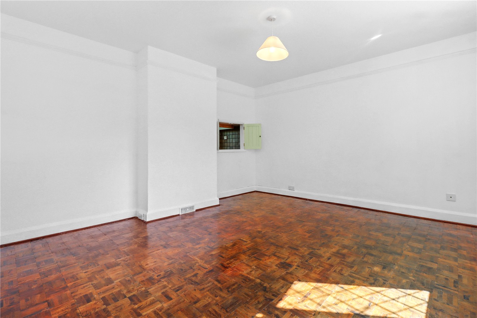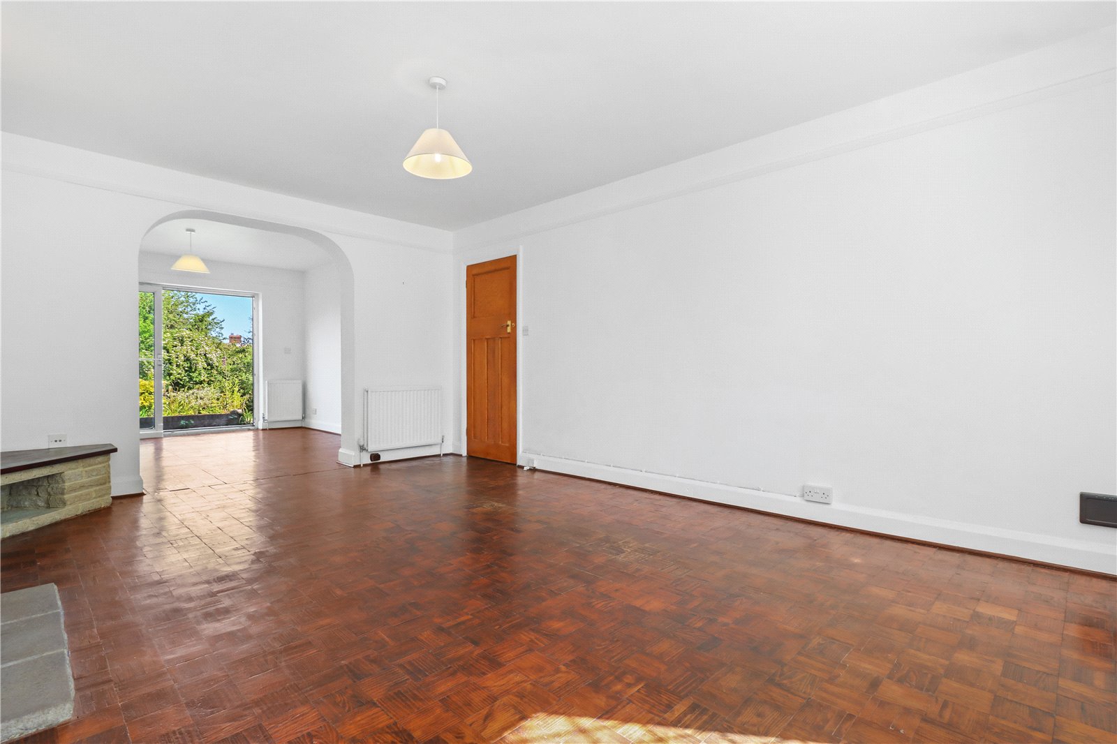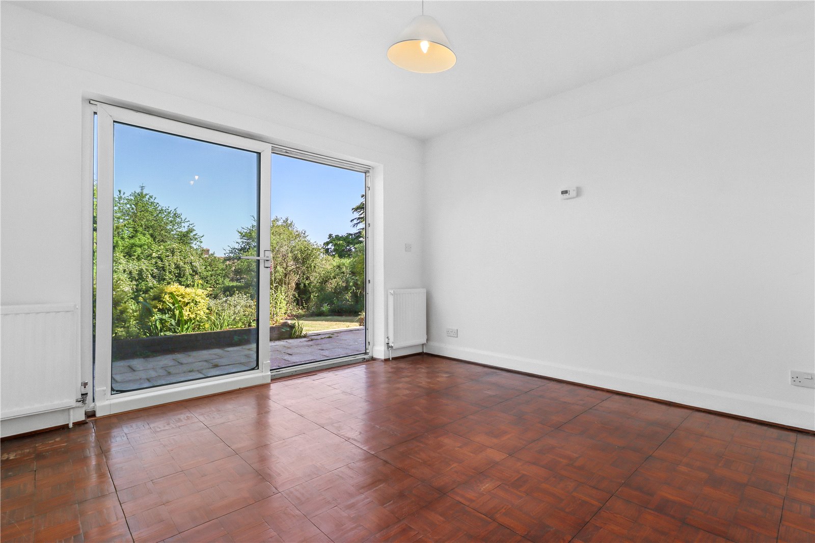 Reception Room 3: 11’7 x 11’7 Approached from sitting room with continuation of woodblock flooring, radiator, ceiling light, large full length double glazed window overlooking rear garden and sliding double glazed door opening to rear garden sun terrace.
