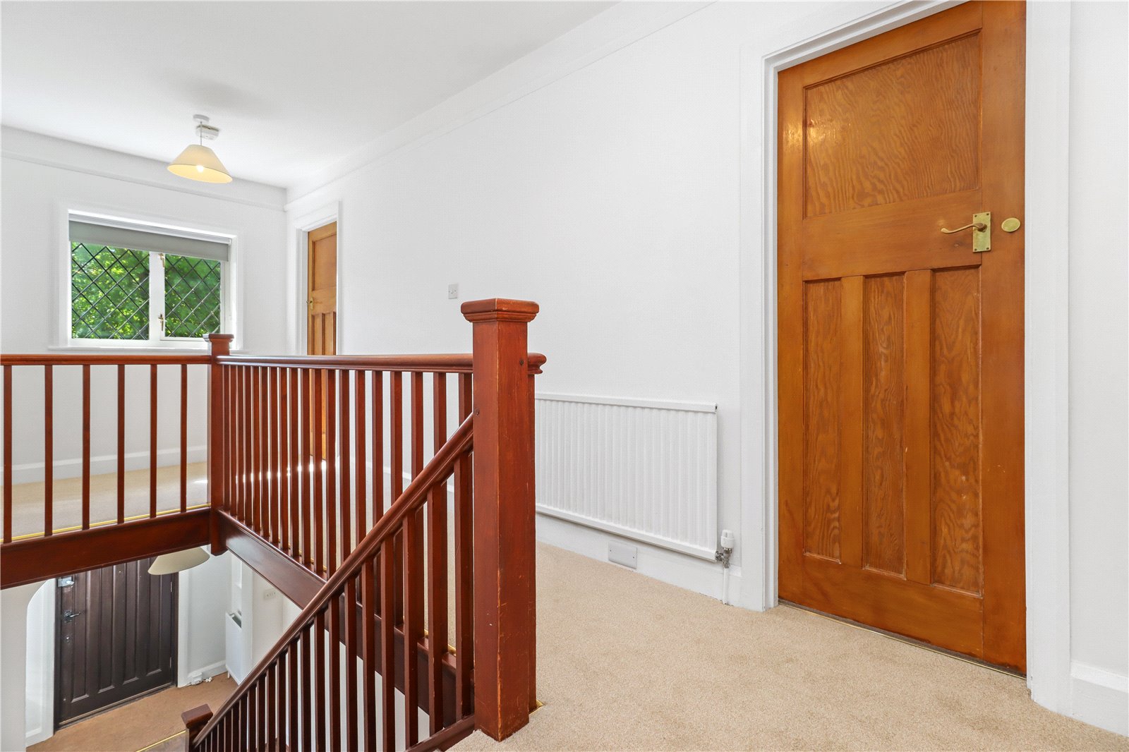 FIRST FLOOR LANDING: Stairs from main entrance hall with original wooden balustrading leading to generous sized first floor landing with , radiator, two ceiling lights, double glazed leaded light window overlooking front garden, original wooden feature door to airing cupboard with hot water cylinder, further linen cupboard over, ceiling fitted loft hatch for attic storage area.