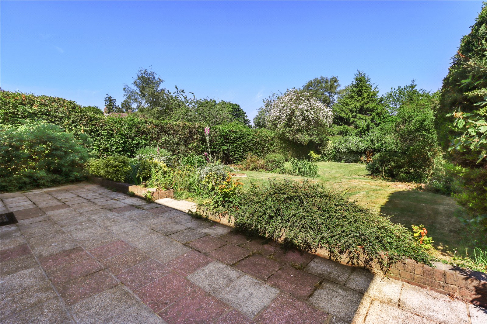 REAR GARDEN: This enchanting and substantial sized mature garden is laid mainly to lawn and enjoys a lovely sunny aspect. There is an impressive range of specimen trees and a variety of shrubs and flower borders, as well as a large paved sun terrace adjoining the rear of the main house, which is ideal for alfresco dining.