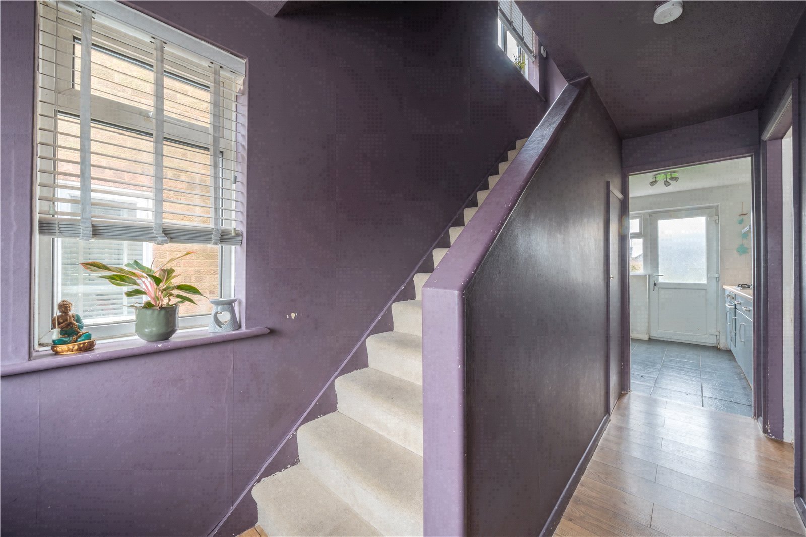 • Galley-style kitchen with direct garden access and scope for modernisation