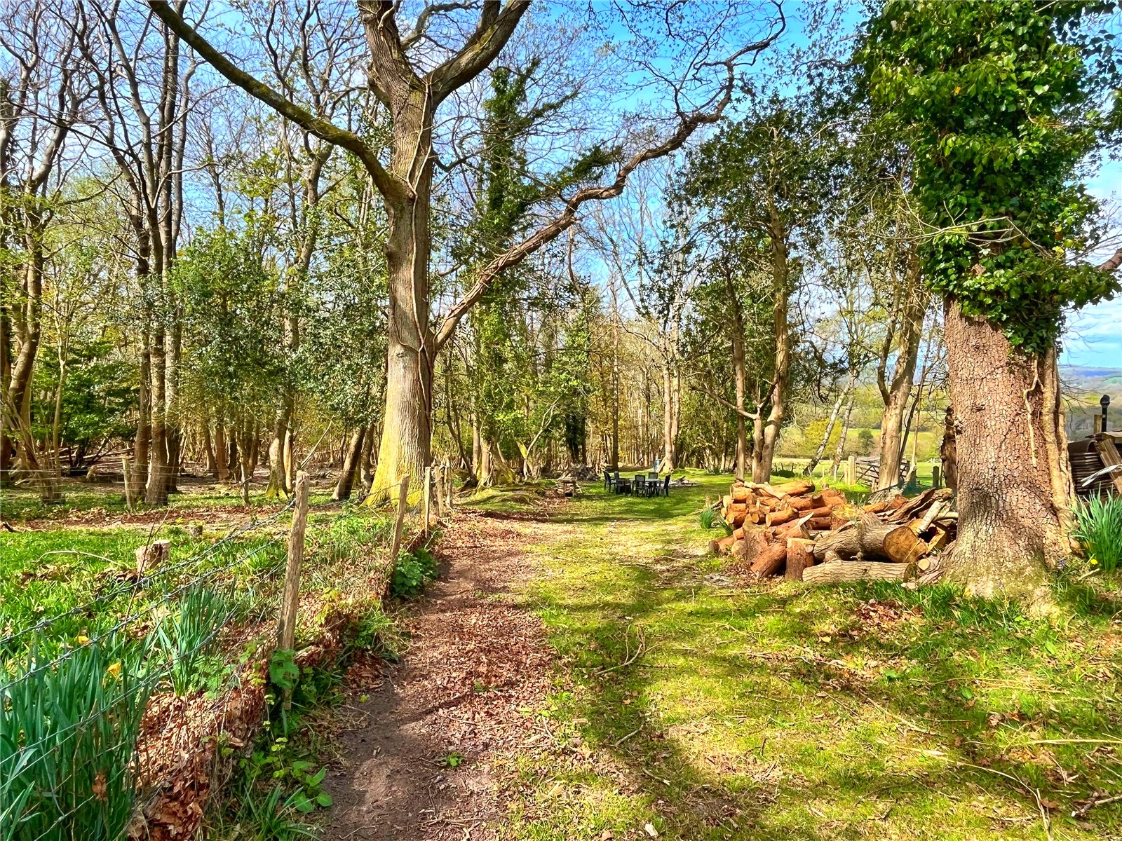 WOODLAND: This is a very attractive area used by the family for recreation and which then adjoins the large further grazing paddock below.