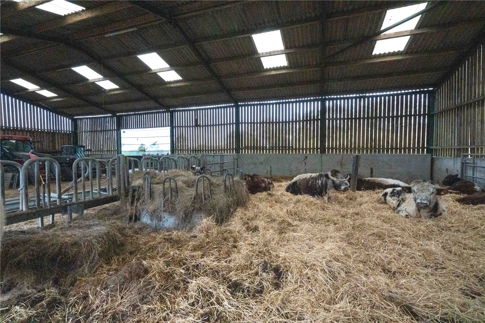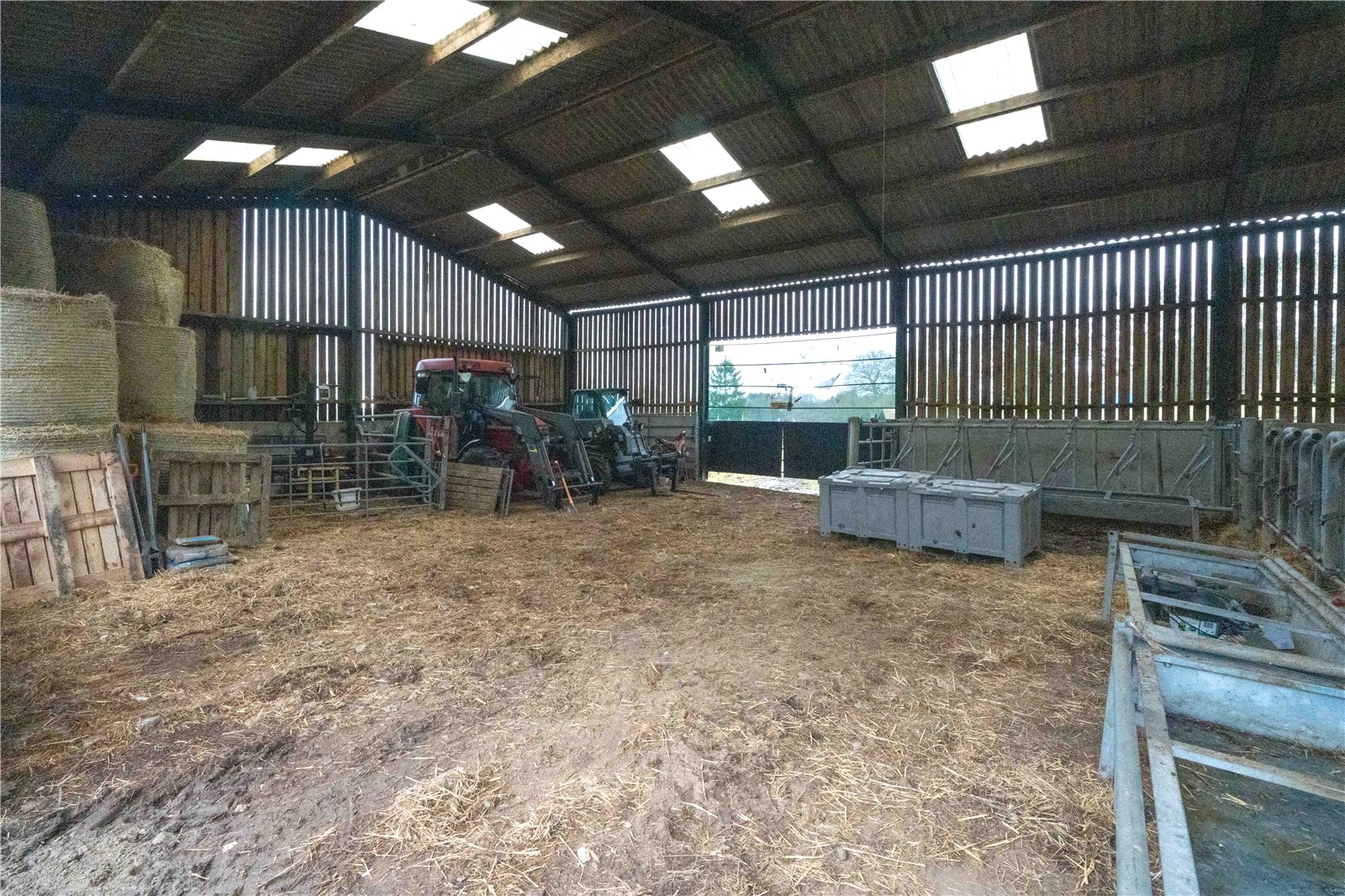 Comprising of a pitched roof and vaulted ceilings with large openings for tractors and livestock access to both sides. The high roof space allows for potentially a second level to be incorporated subject to planning.