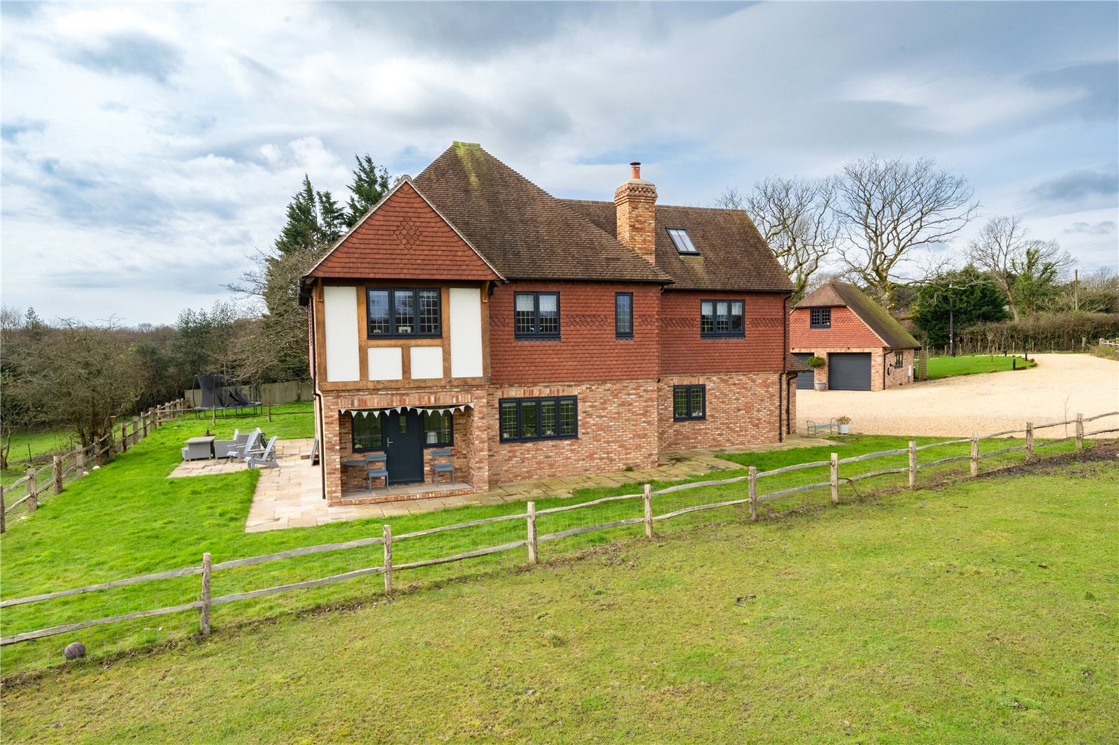 The main house is arranged over three floors and with 4 reception rooms, including a large formal dining room with a feature fireplace, as well as a generously proportioned sitting room also with a feature fireplace. This naturally bright and spacious family modern / relatively new country residence, has been built to a very high standard throughout and benefits from circa 7 years of a remainder of a NHBC guarantee.