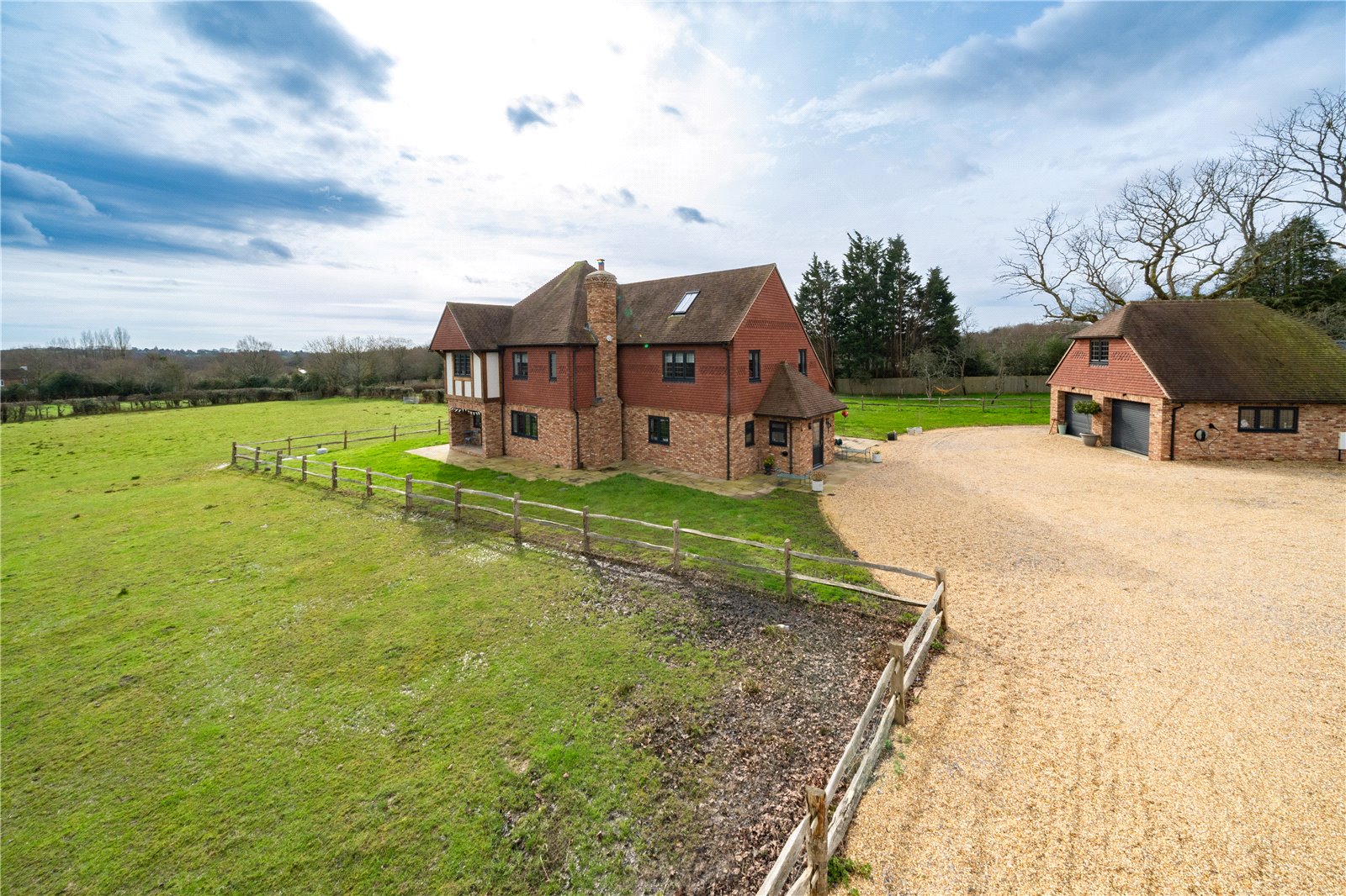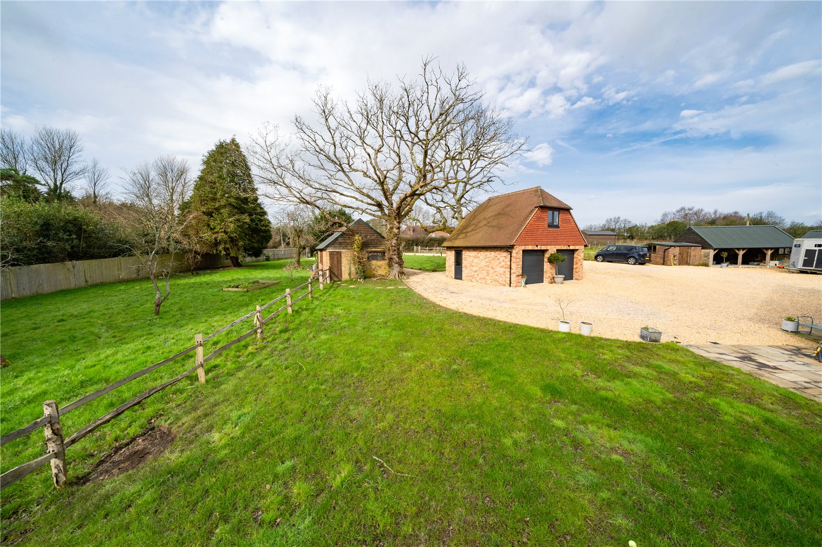Currently the property is accessed off the country road by its own private driveway with its impressive electric security entry gates. The drive itself, is a substantial size with gravel surfaces and is able to amply provide parking for numerous vehicles, including larger vehicles and horse boxes.