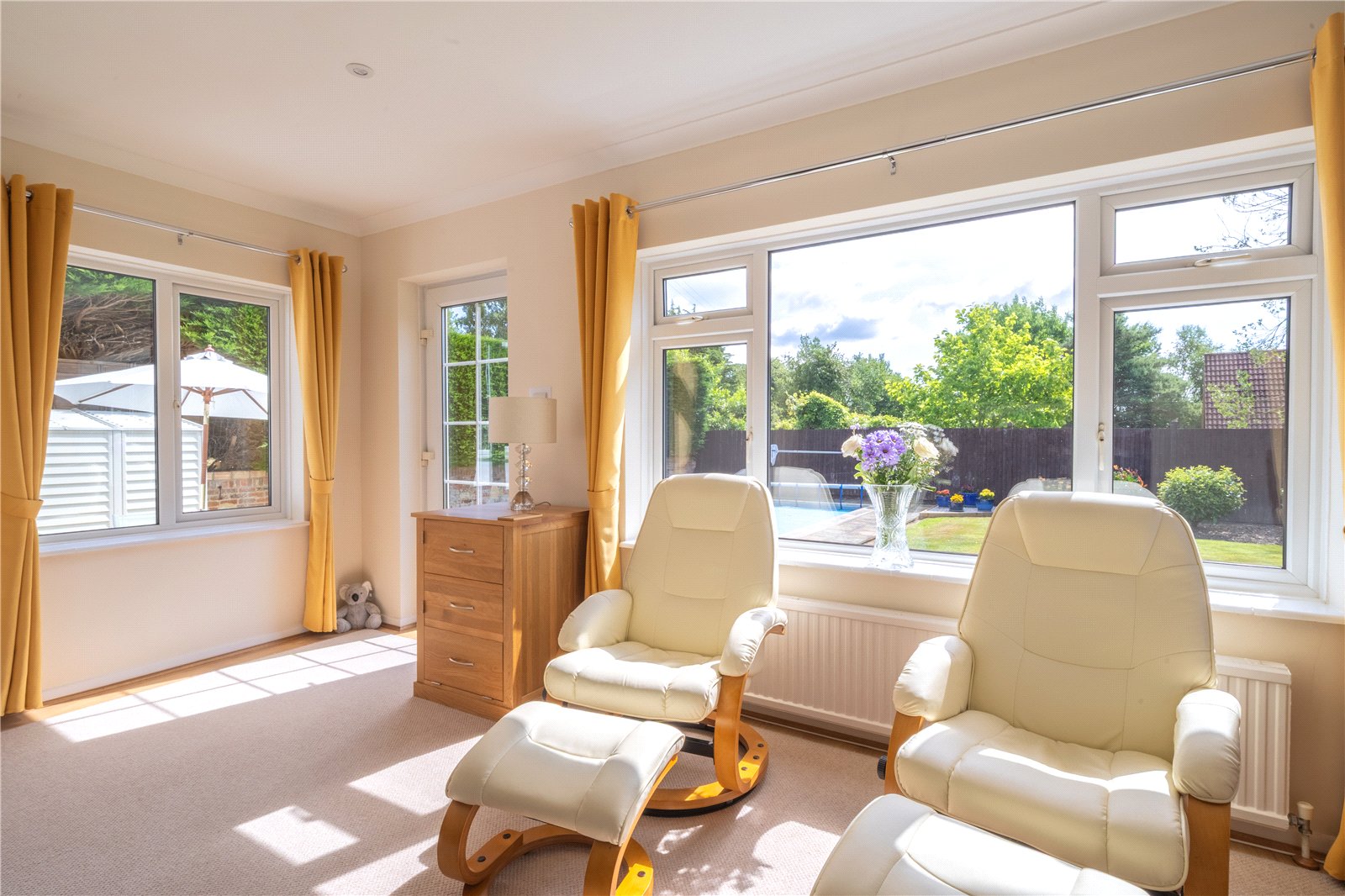 BEDROOM 3 (DOWNSTAIRS BEDROOM): This room is another good-sized double with windows facing the rear garden overlooking the swimming pool, ensuring plenty of natural light. It benefits from an en-suite shower room/wet room and offers flexibility and can easily serve as a guest bedroom or home office.