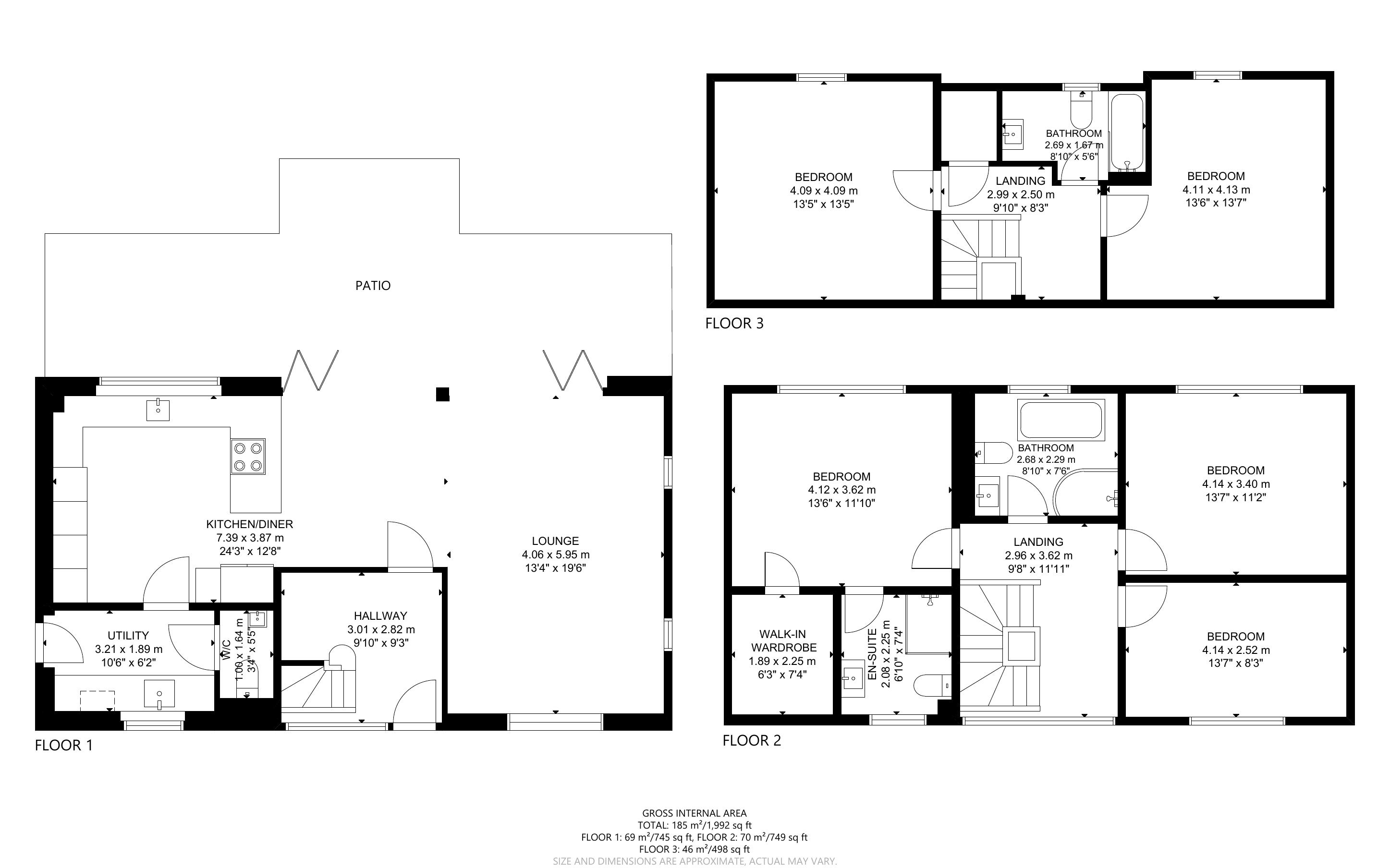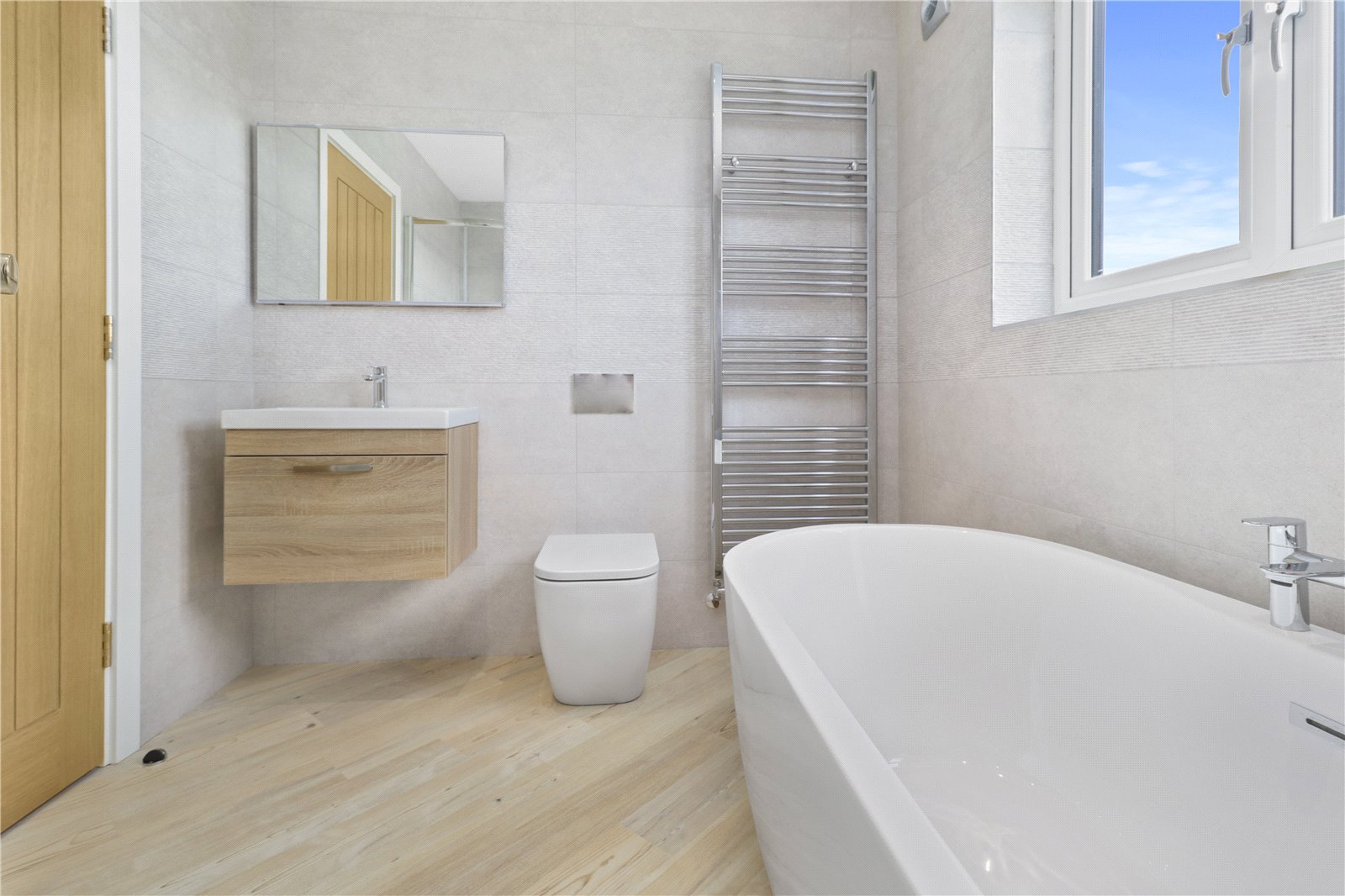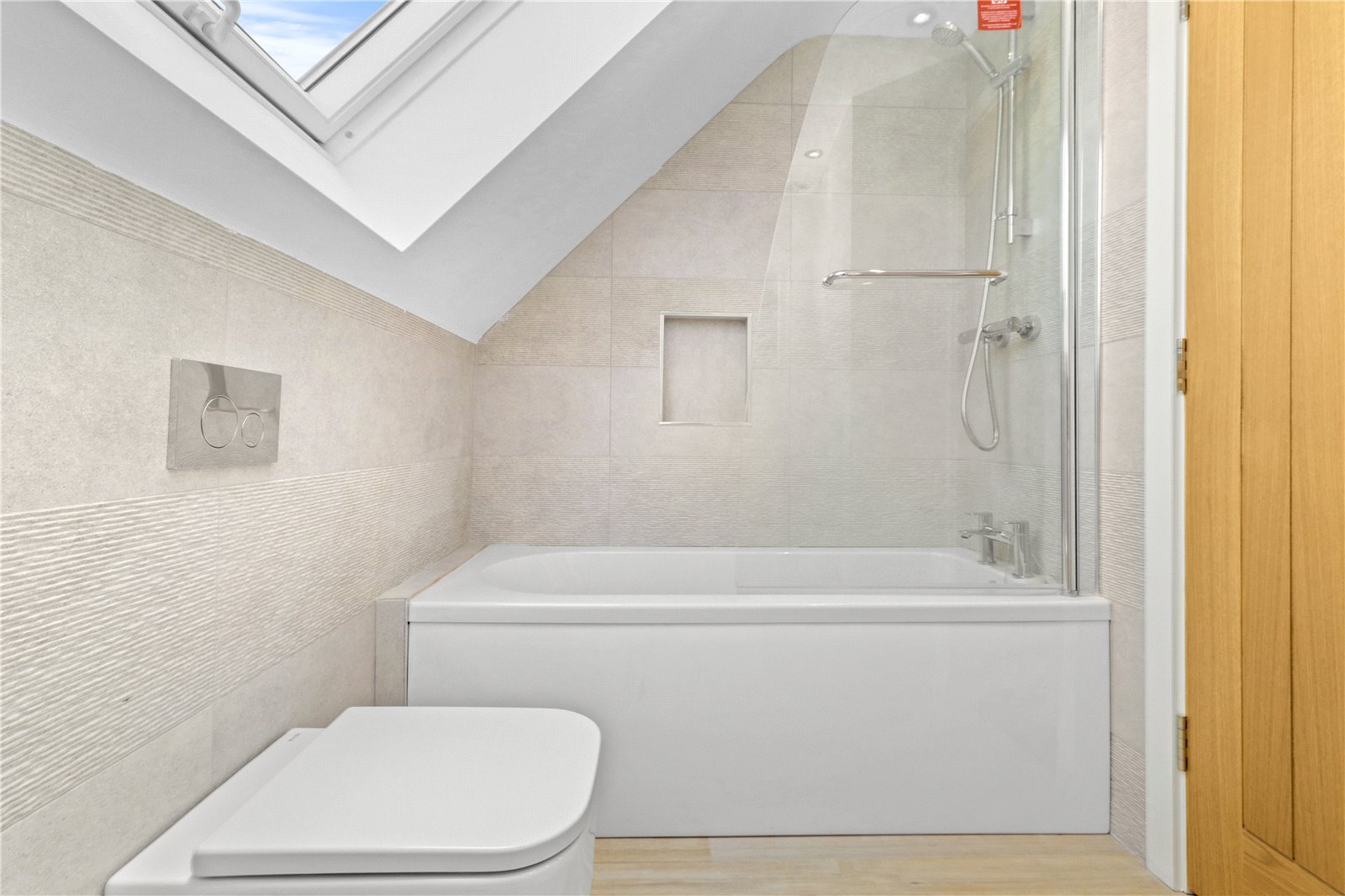 SECOND FLOOR FAMILY BATHROOM / SHOWER ROOM: Approached off the second-floor landing and comprising of a panelled bath with chrome taps and tiled surrounds, a separate shower cubicle with heavy glazed and chrome front with chrome shower control system, W.C. and quality ceramic wash basin, heated chrome towel rail, double glazed powder coated window with aspect over the rear garden and beyond.